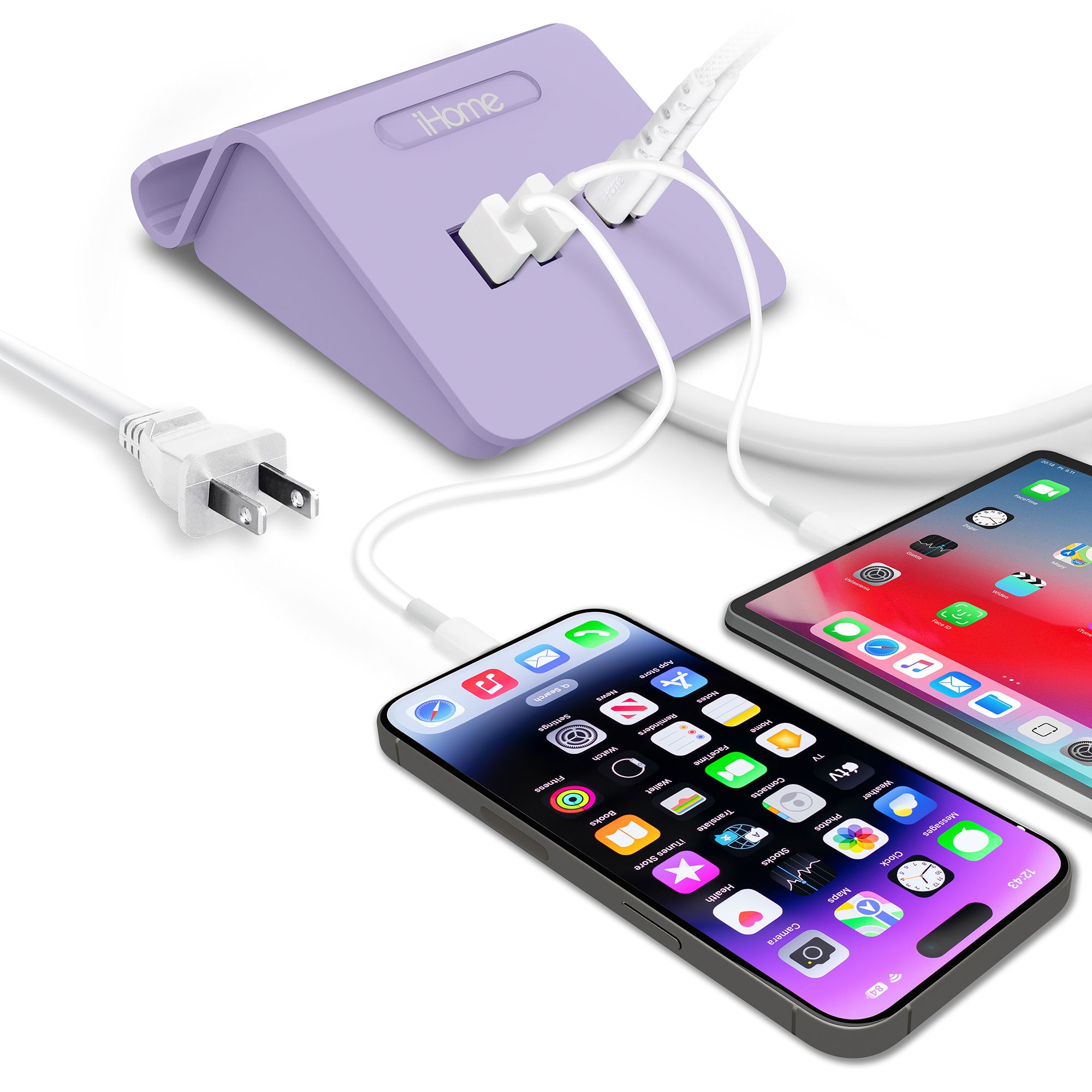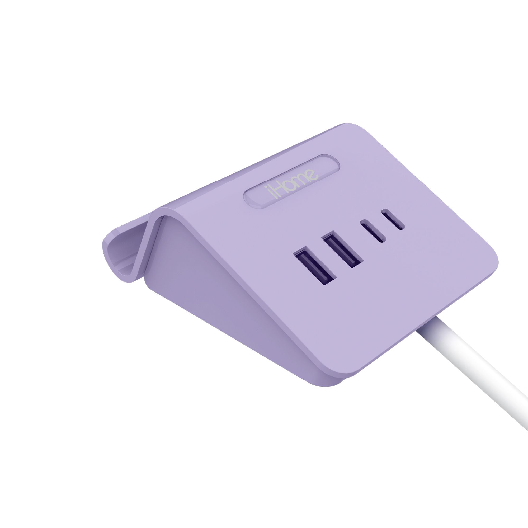 iHome 4 Port USB (1 USB-C, 3 USB-A) Charging Hub with Phone Holder - Pastel Purple