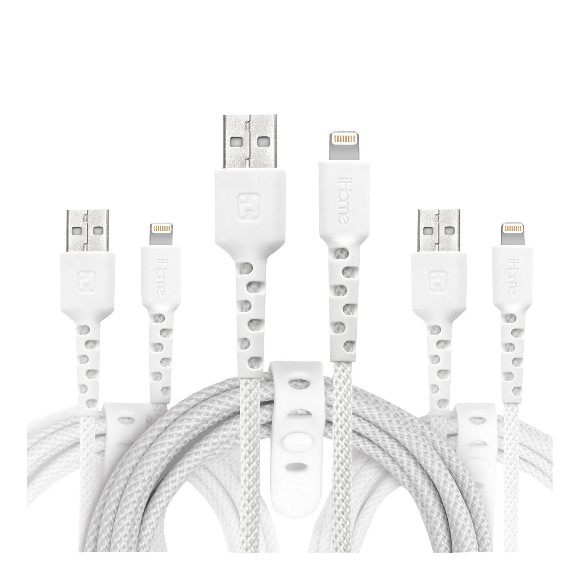 iHome TPE Durastrain Lightning to USB-A Nylon Braided Charging Cable with Silicone Wrap, 3 pk.