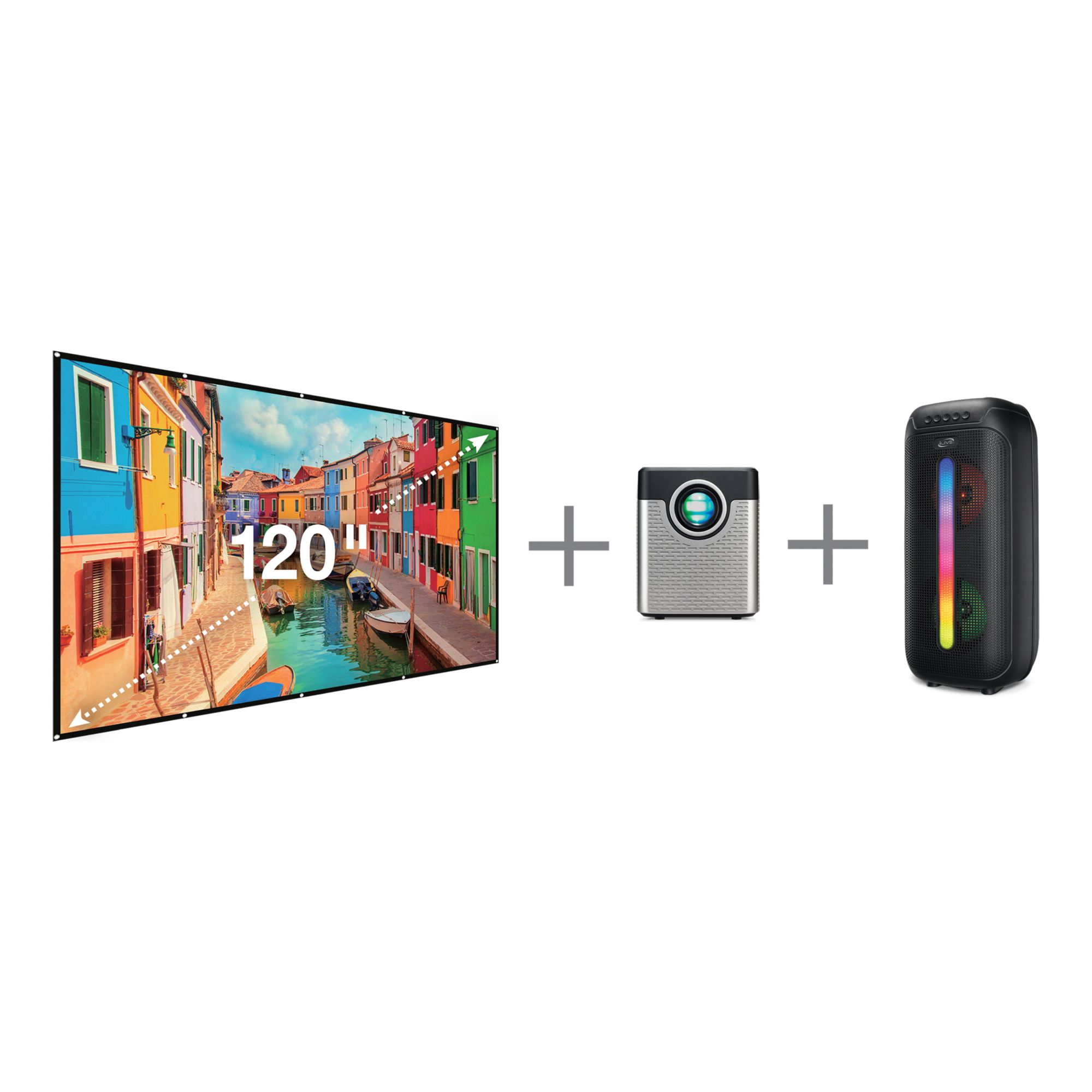 iLive Cinema Pop Up Movie Kit, Projector, Projection Screen, Bluetooth Speaker, Tripod Bundle
