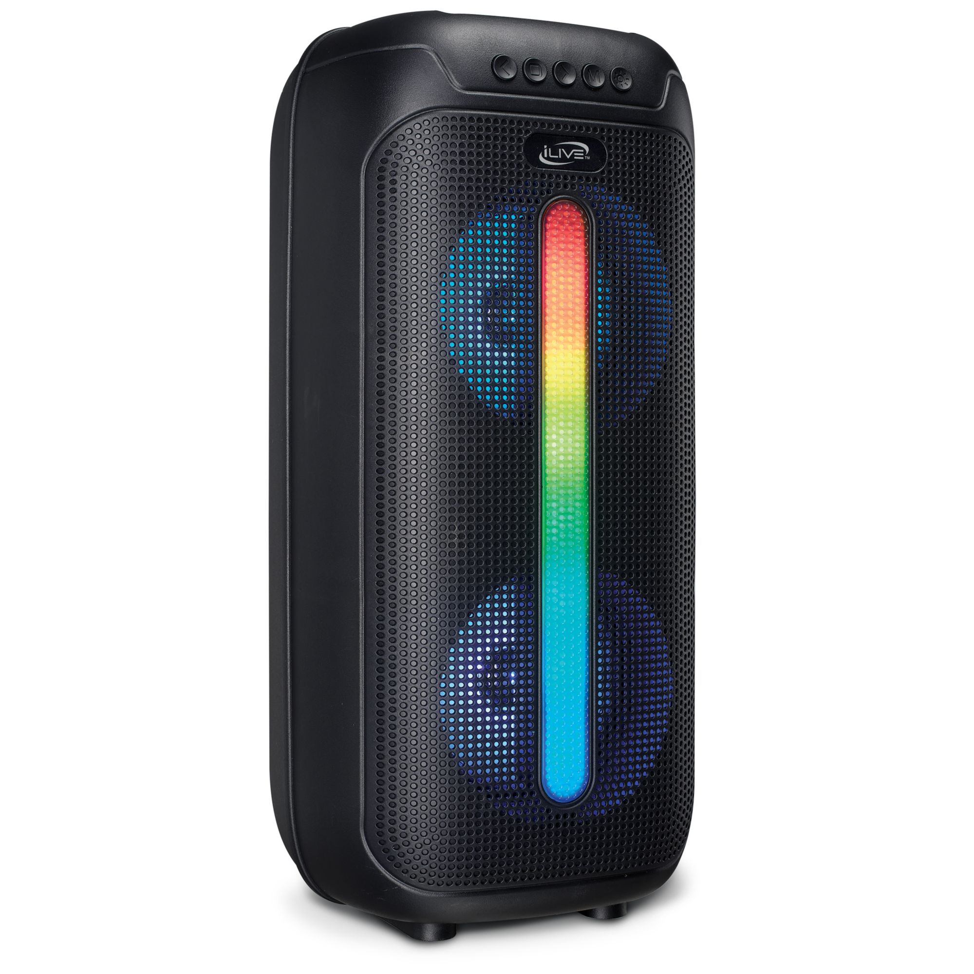 LED light effects, built-in carry handle, microphone included