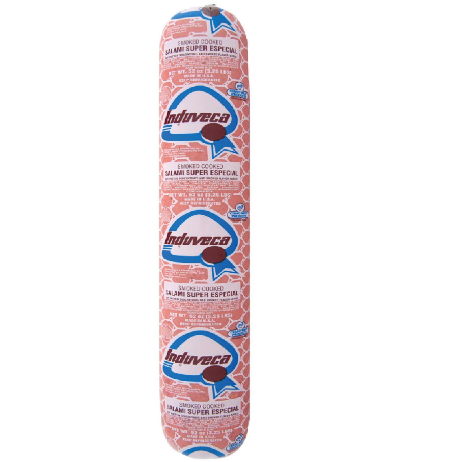 Induveca long salami is made from pork and beef meat products. Smoke flavor is added to enhance it’s taste. Can be enjoyed on sandwiches, salads and plenty more.