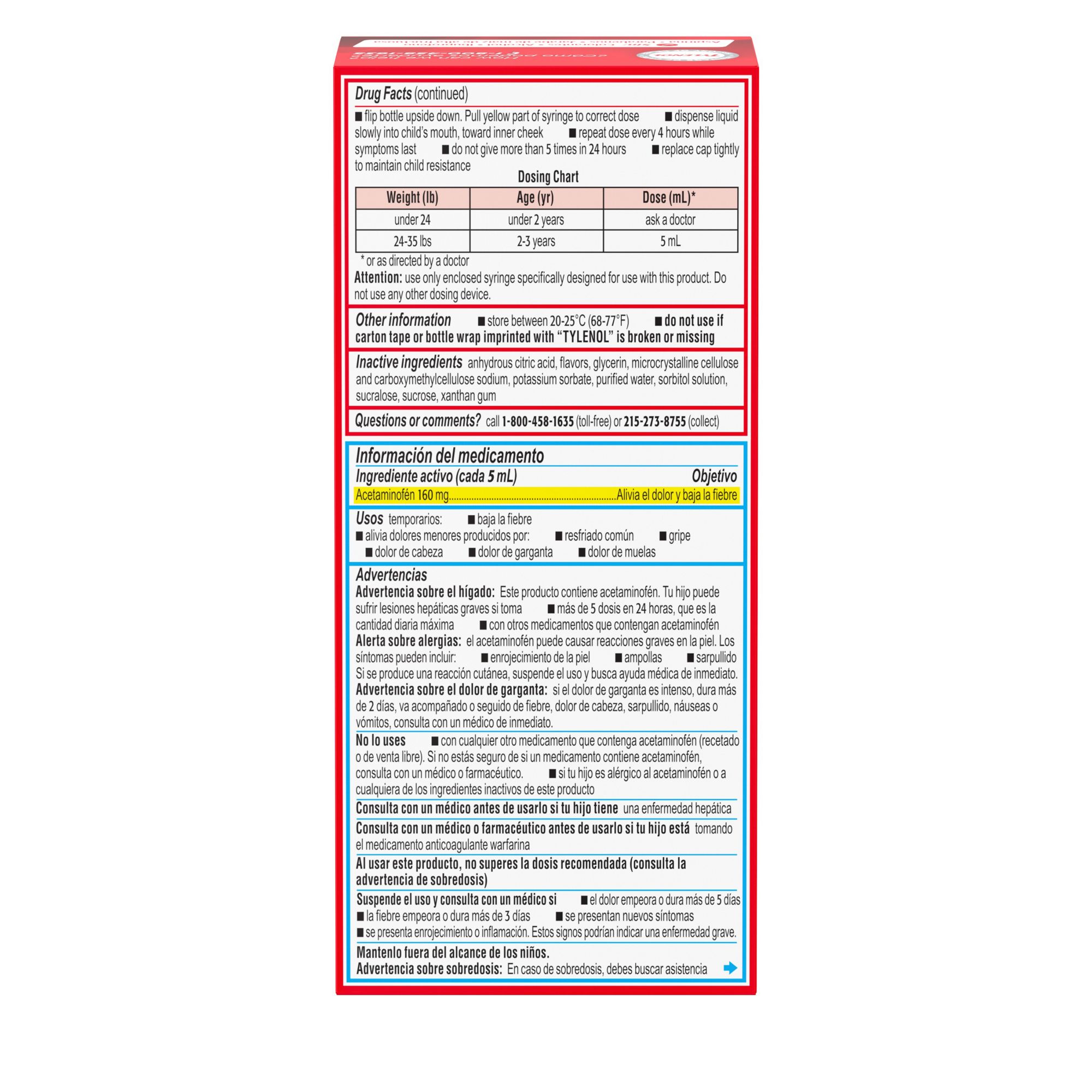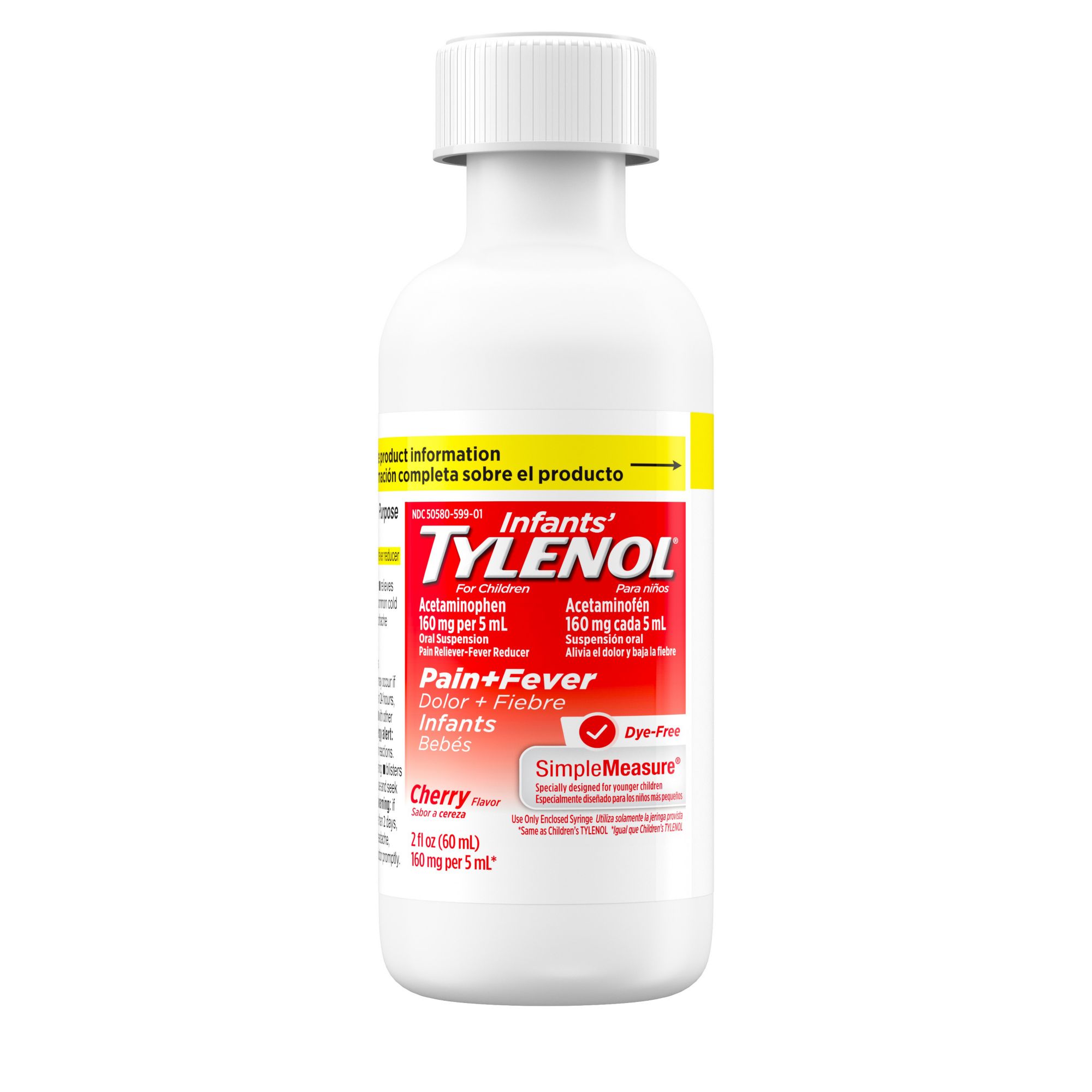Provides safe, effective relief when used as directed for baby’s fever and minor aches and pains, including teething pain Relieves symptoms of cold, flu, sore throat, headache, and toothache Dye-free formula Oral suspension is easy to administer Works without upsetting little stomachs Contains 160mg of acetaminophen per 5mL Tylenol is #1 pediatrician recommended brand for pain and fever Cherry flavor