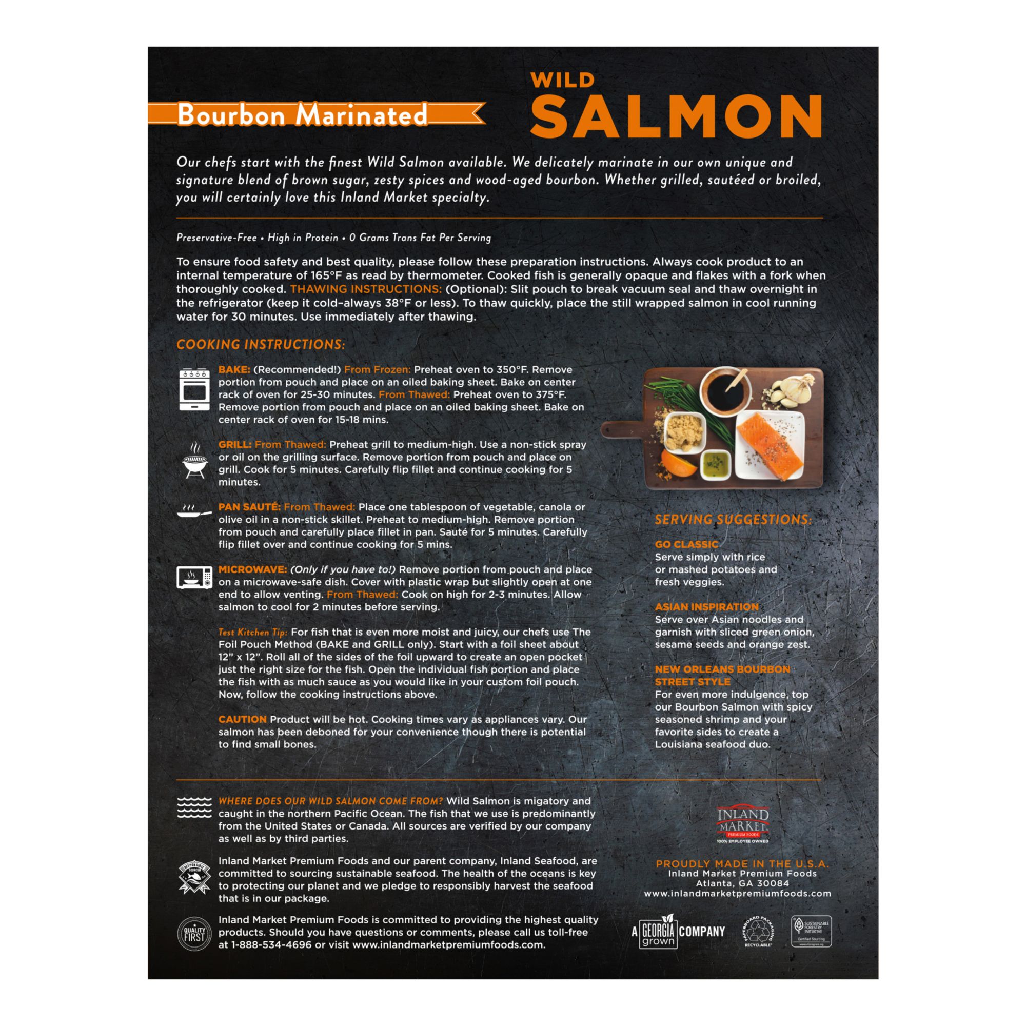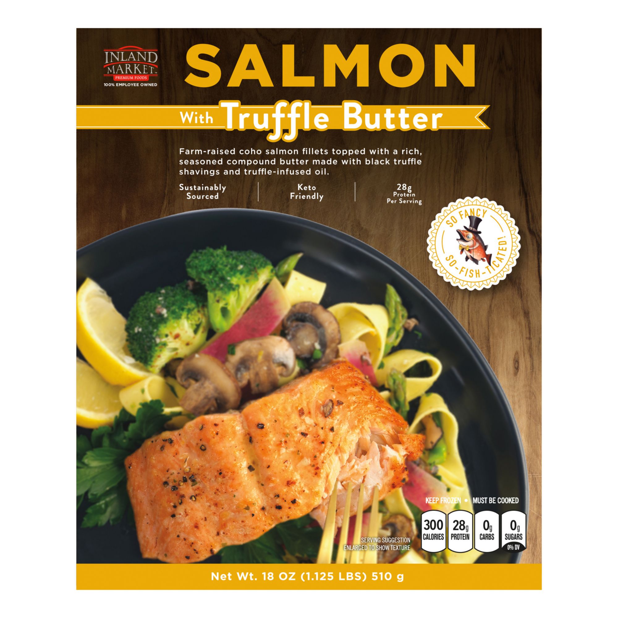 Inland Market Salmon with Truffle Butter is made with sustainably sourced, farm-raised Coho salmon, and all natural butter infused with truffles.