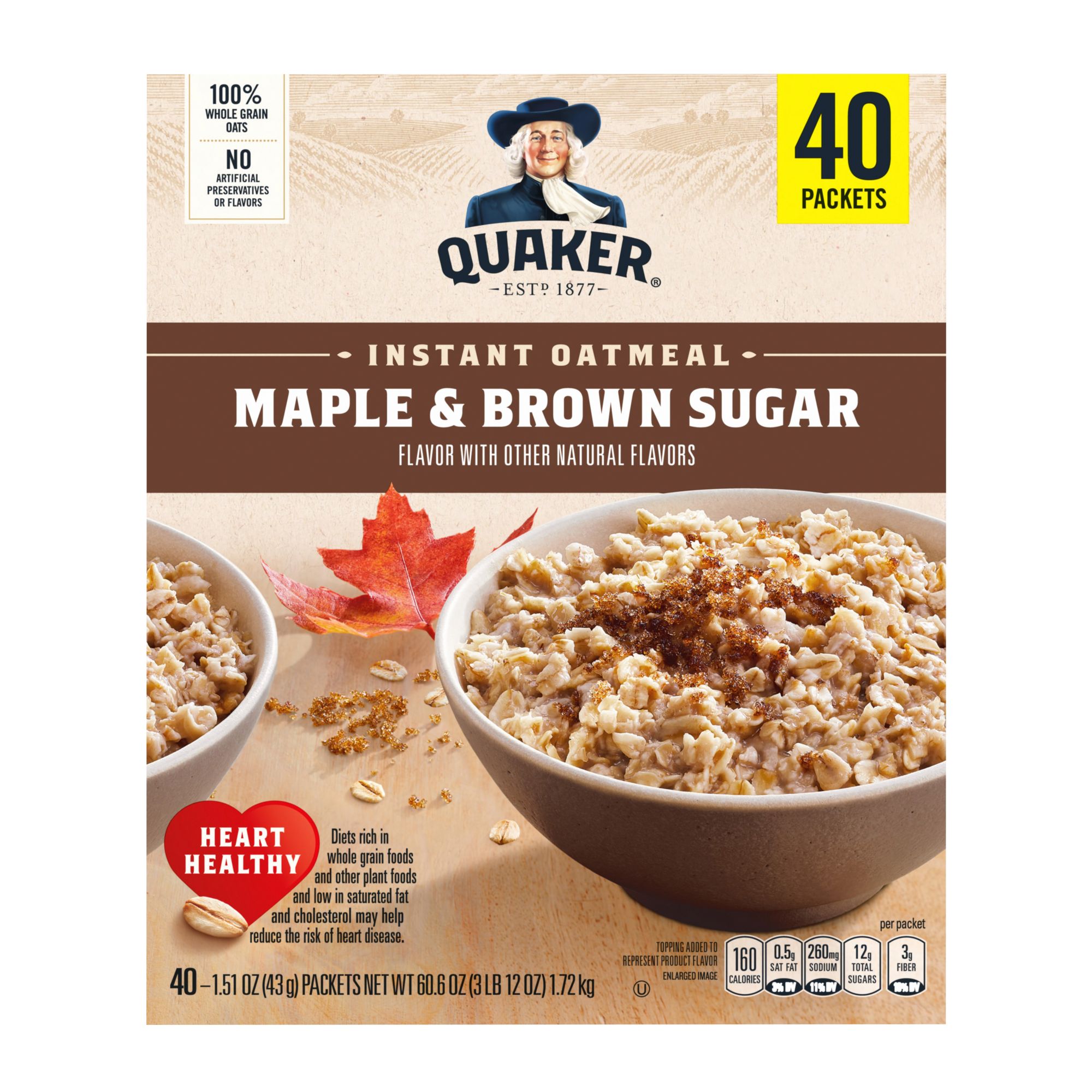 Instant Quaker Oats Maple & Brown Sugar Oatmeal, Single Serve Packets, 40 ct./1.51 oz.