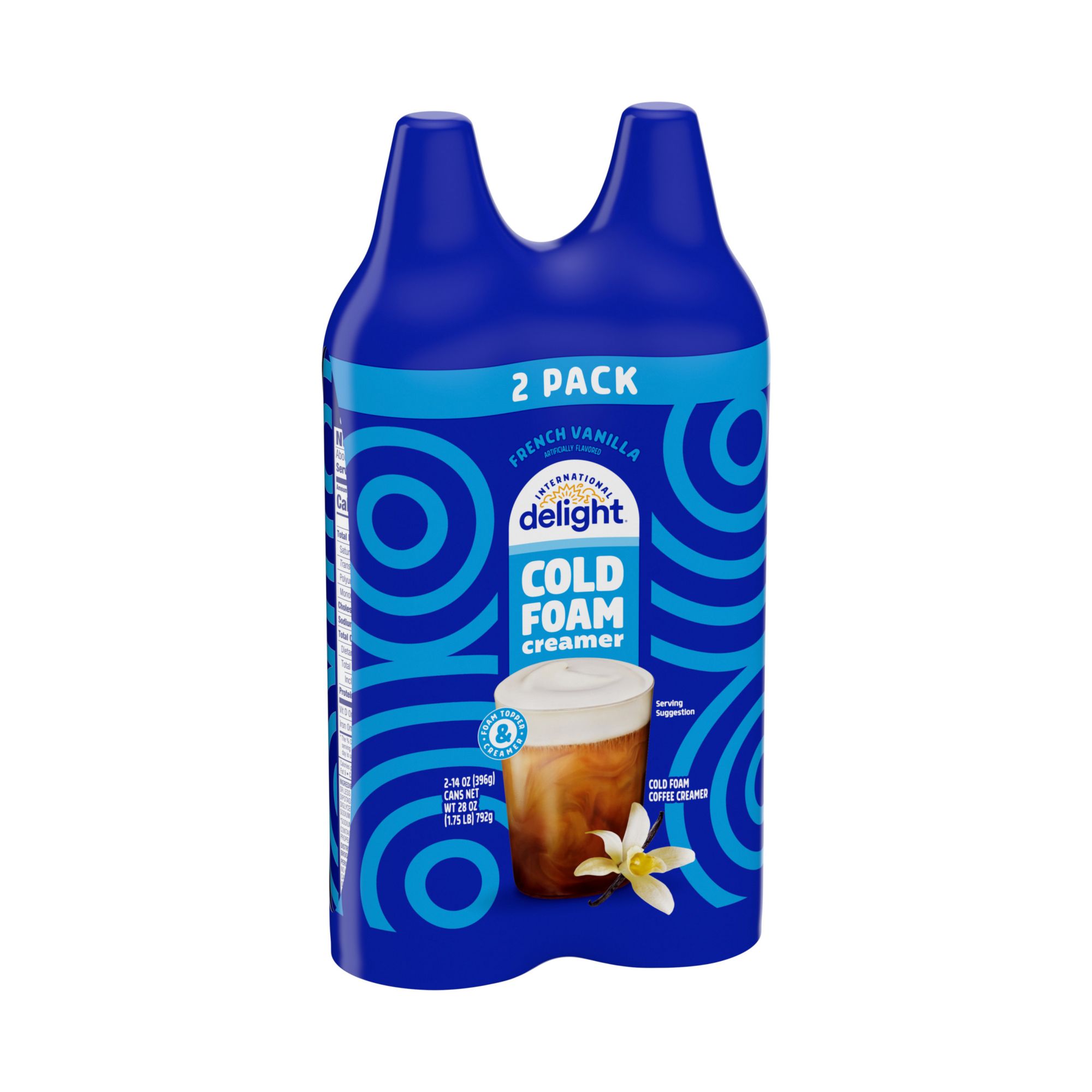 Say hello to cold foam at home with a two-pack of International Delight French Vanilla Cold Foam Coffee Creamer. This cold foam creamer adds a sippable foam topper and creams your coffee with delicious flavor. No need for extra machines or frothers. With just the push of a button, you can add a foamy layer of bold vanilla flavor to your at-home coffee creations. Simply shake it up, layer it on, and watch your hot or cold coffee turn into a flavorful cold foam creation that used to require a trip to the coffeehouse. Just like that, you're a barista! Plus, International Delight Cold Foam Creamers are available in a variety of flavors, lactose-free, and gluten-free, so they're easy to share. Top off your mug with International Delight French Vanilla Cold Foam Coffee Creamer. It's Foaming Delicious!