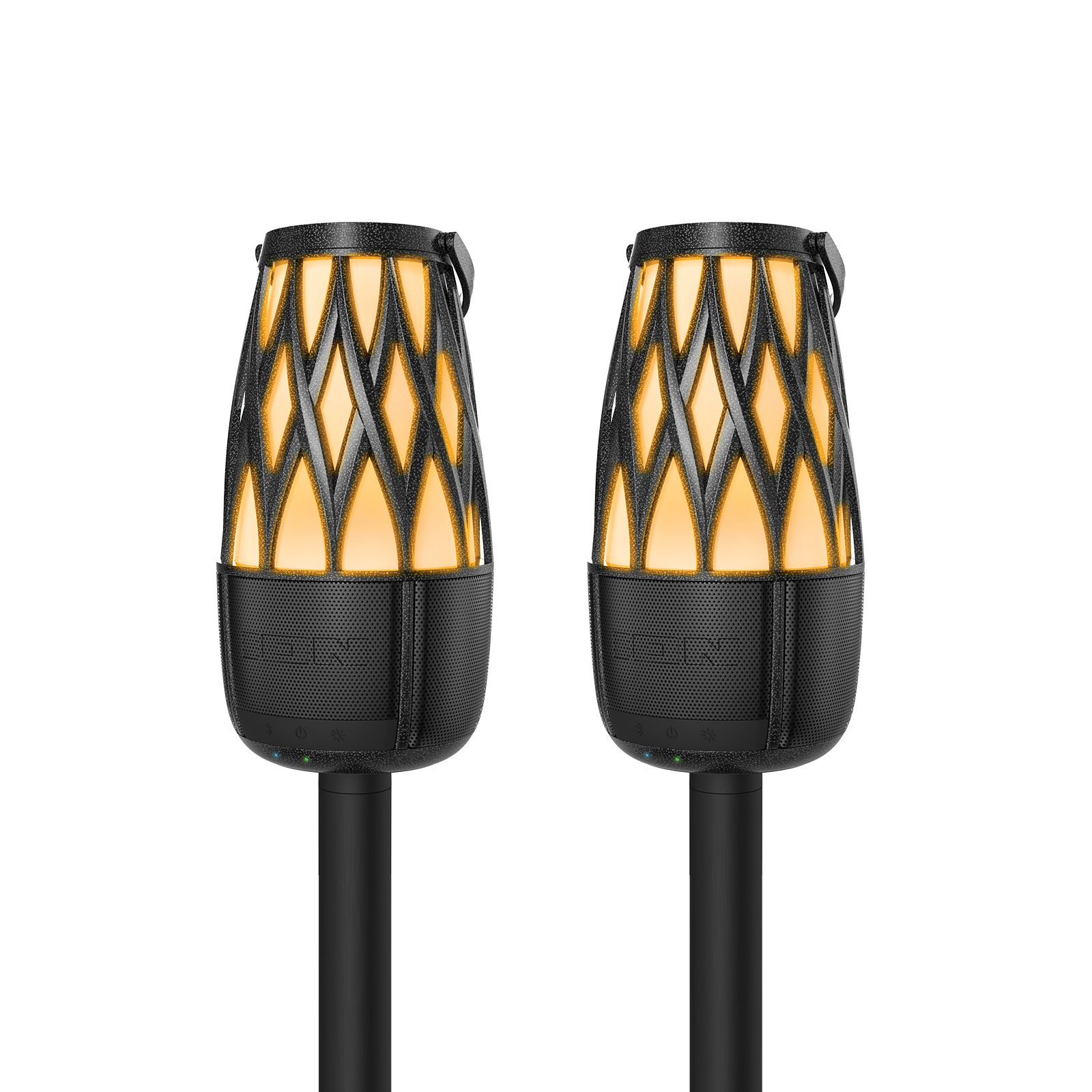360° sound experience: provides 360° premium surround sound Bluetooth 5.0 compatible: stream and control your music wirelessly up to 100' ION sound XP app: controls audio and lighting Remote power on: turn on/off with ION sound XP app Multi-sync technology: easily control up to 100 linked ION audio speakers Flame/flicker effect: three brightness settings plus candle flicker effect Rechargeable 10-hour battery: delivers long-lasting performance Solar panel: recharges the battery using sunlight IPX5 water-resistant: safe to leave in the rain or near the pool Includes two Tahiti speakers (black), four pole segments (20"/ 50cm each), two stakes, two pole connectors, two threaded tube caps, two micro-USB cables (12"/ 30cm each), quick-start guide Warranty: 90 days
