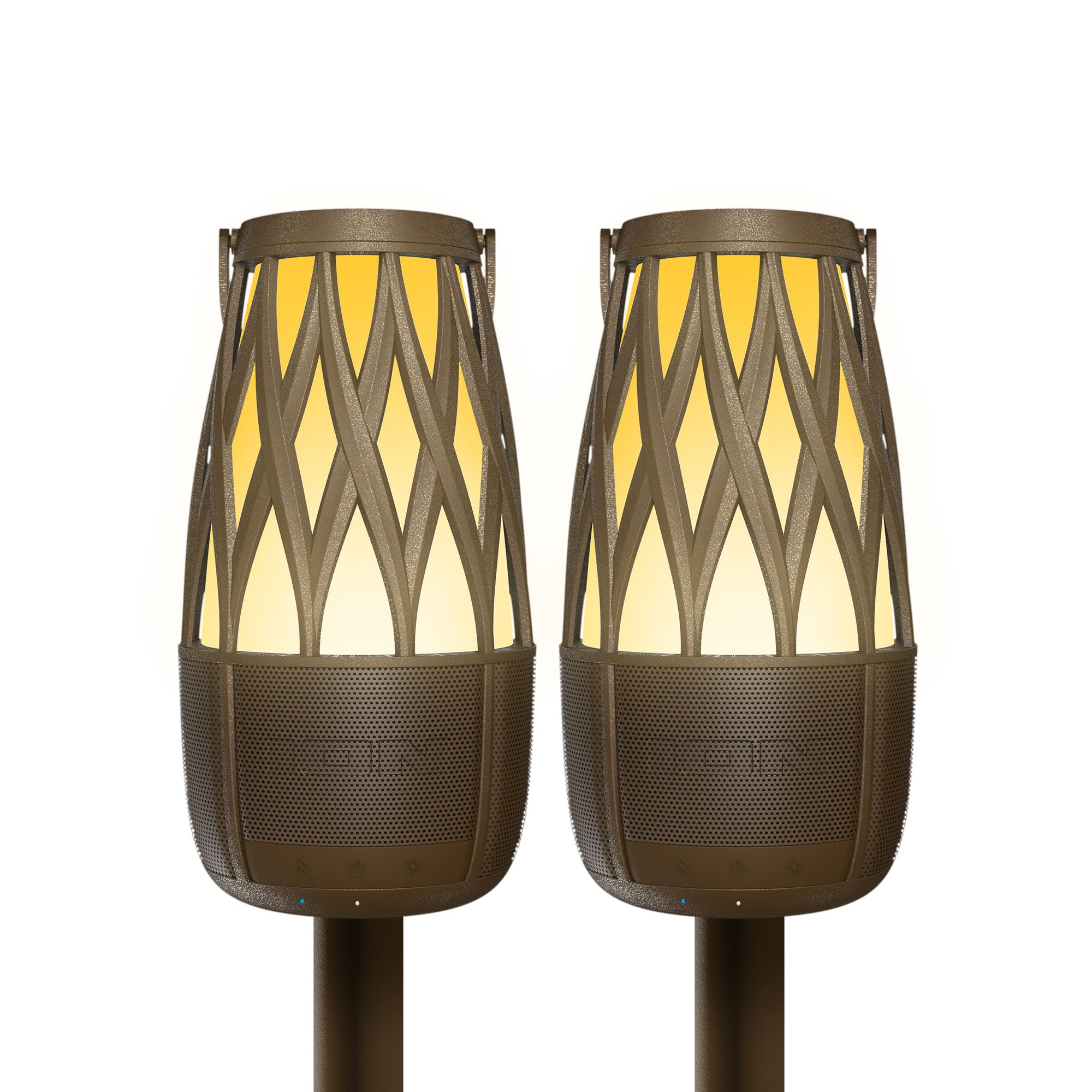 Add light, style, and 360˚ premium surround sound to the outdoors wirelessly with the ION Audio Tahiti Solar Speaker Pair. The Tahiti Speaker Pair are IPX5 water-resistant outdoor speakers in the shape of elegant tiki-style lamps. They allow you to stream and control your music wirelessly up to 100' through any Bluetooth-enabled device. Thanks to ION's special 360˚ Sound Experience innovation, they each have 360˚ premium surround sound covering a wide range area, making them ideal for outdoor use. With three levels of brightness and an optional candle flicker effect, it is easy to create the perfect atmosphere for your gathering.