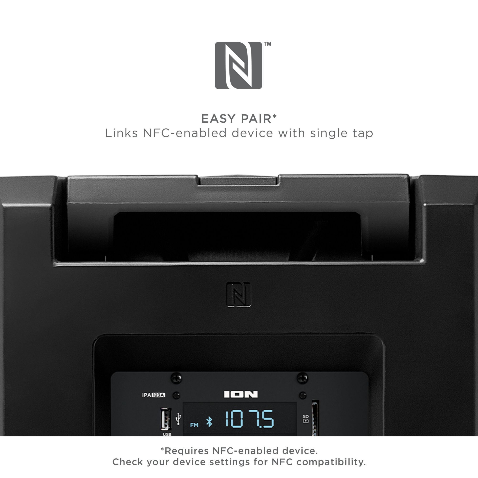 ION Sound Xp App: controls audio and lighting Bluetooth 5.0 Compatible: stream and control your music wirelessly up to 100' Bi-amplified 500W Sound System: 15" (381mm) woofer, 1" (25.4mm) tweeter deliver lifelike sound One-touch User Interface: simple control knob for all sound adjustments FM Radio with Presets: plays all your favorite stations Wireless Stereo-Link: wirelessly connects one additional Total PA Spartan for stereo sound from all sources and inputs Multi-colored Lights: woofer glows in multiple colors and dances to the beat Multi-channel Mixer: mixer with main volume and XLR inputs Built-in Handles and Wheels: for easy transportation Includes Total PA Spartan, EC320 C13 power cable (5'/150cm), microphone with cable (15'/450cm), speaker stand, quick start guide, safety manual Warranty: 90 days