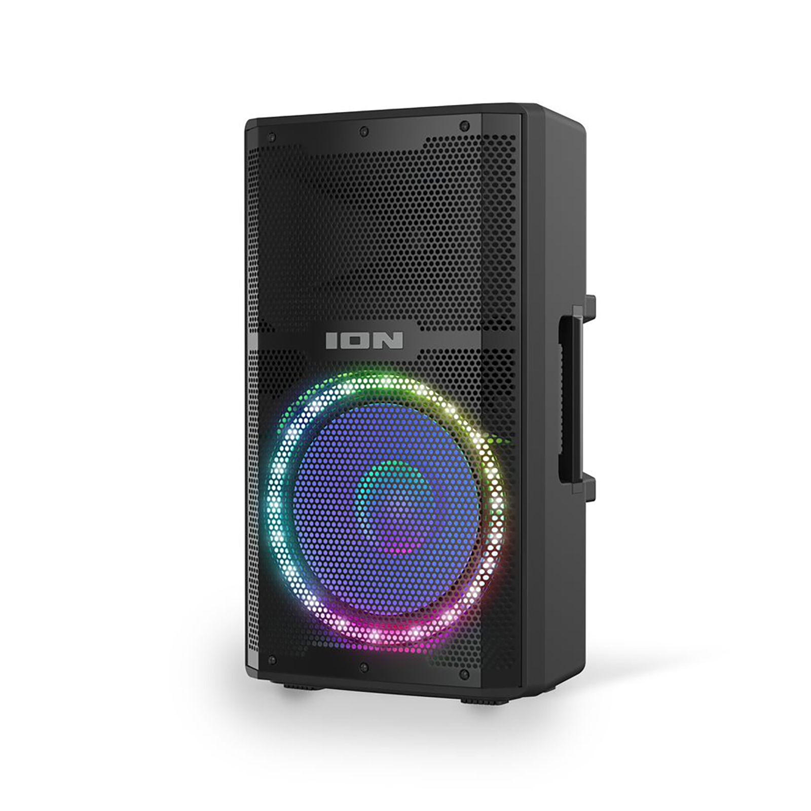 A wedding reception. A sports tailgate. An employee meeting. A backyard birthday party with friends and family. These are just a couple of the venues and environments that demand an all-in-one portable PA system that can cover a large area with powerful sound and is easy to set up. TheION Audio Total PA Titan 500W Bluetooth Speaker With Party Lights is a high-power 500-watt bi-amplified sound system offering you a 12" woofer and 1" tweeter and delivering a powerful, vibrant sound. This wireless speaker has party lights! Ten multi-colored light modes allow the woofer LEDs to glow in multiple colors and the lights dance to the beat for exciting party atmosphere visuals. You can wirelessly stream music from any Bluetooth device or take advantage of the on-board USB playback which allows you to listen to material recorded on other devices. The PA system also provides an Aux input to easily connect non-Bluetooth devices. For precise tonal adjustments to your audio, select the separate bass and treble controls using the simple One-Touch User Interface for all sound adjustments. The all new ION Sound Control App (available via download) allows you to take control of both your speaker's audio and the speaker’s lighting functions from any iOS or Android device. Personalize your sound and lighting. Add your microphone to the mic input to give a shout out, make announcements or belt out your best Karaoke cover! The Total PA Titan offers built-in handles and wheels that make it easy to transport your new PA speaker to any place you need powerful, portable audio.