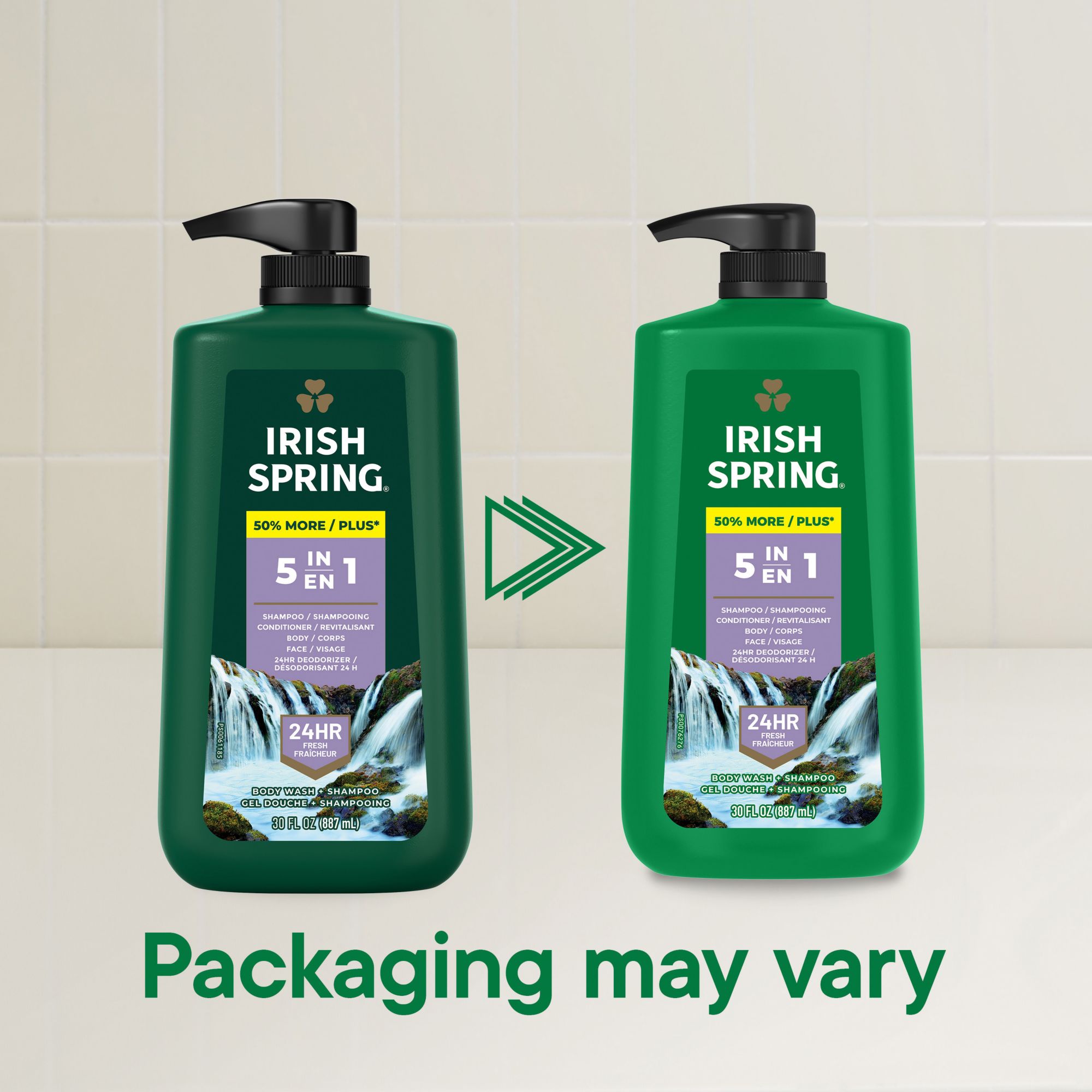 What's included: Two 20 fl. oz. bottles of Irish Spring 5 in 1 Body Wash for Men