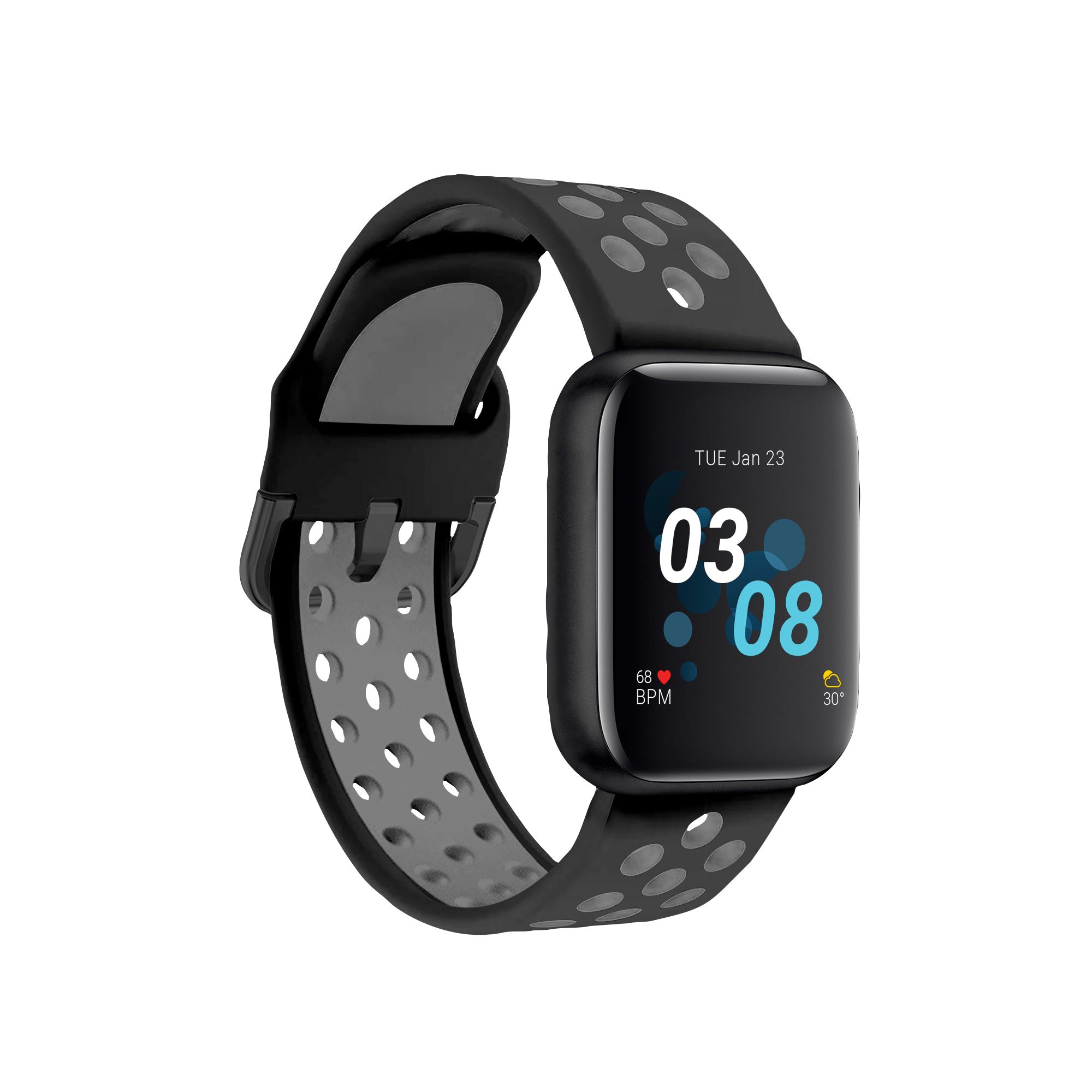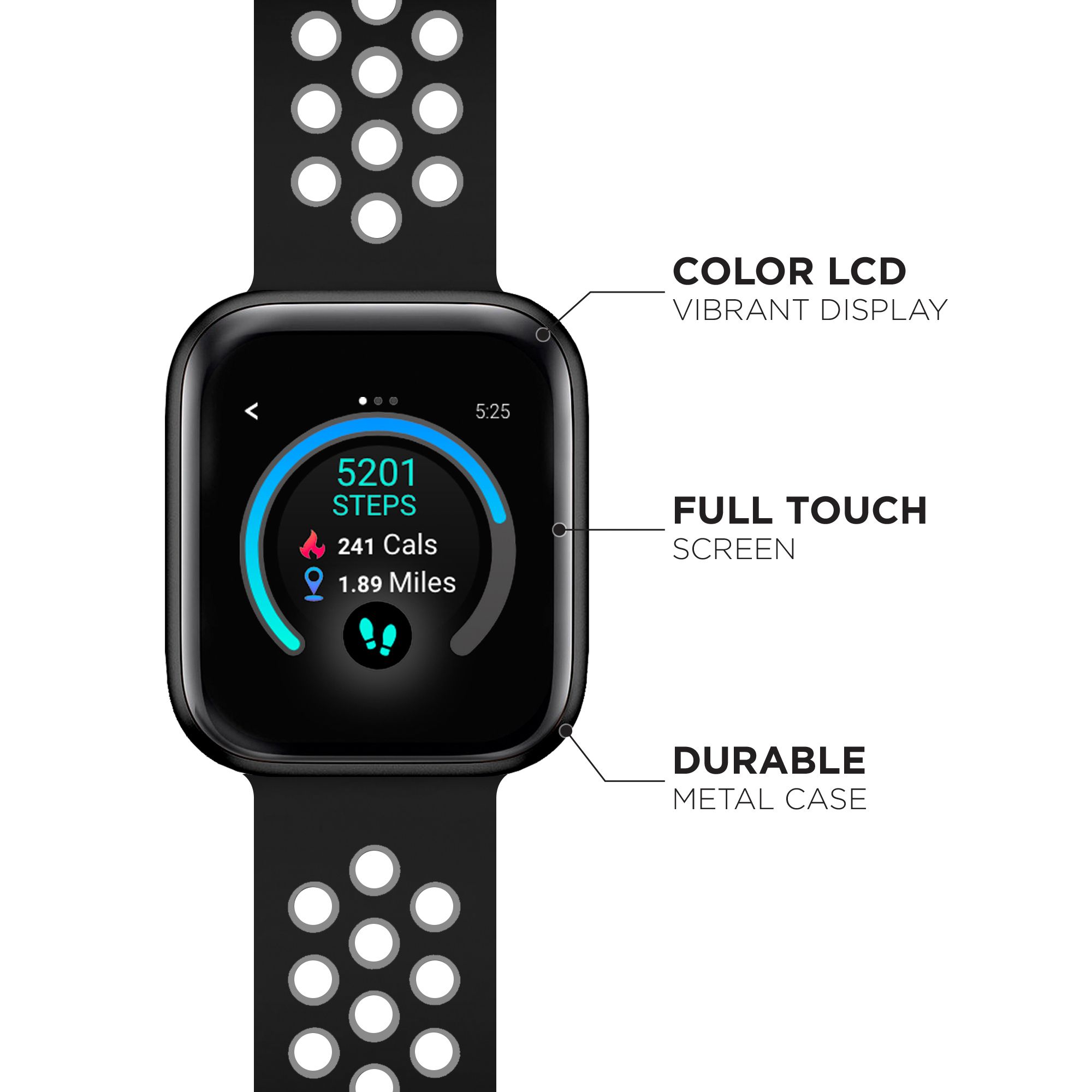 iTouch Air 3 Touchscreen Smartwatch Fitness Tracker, 44mm - Black Case with Black/Gray Perforated Strap