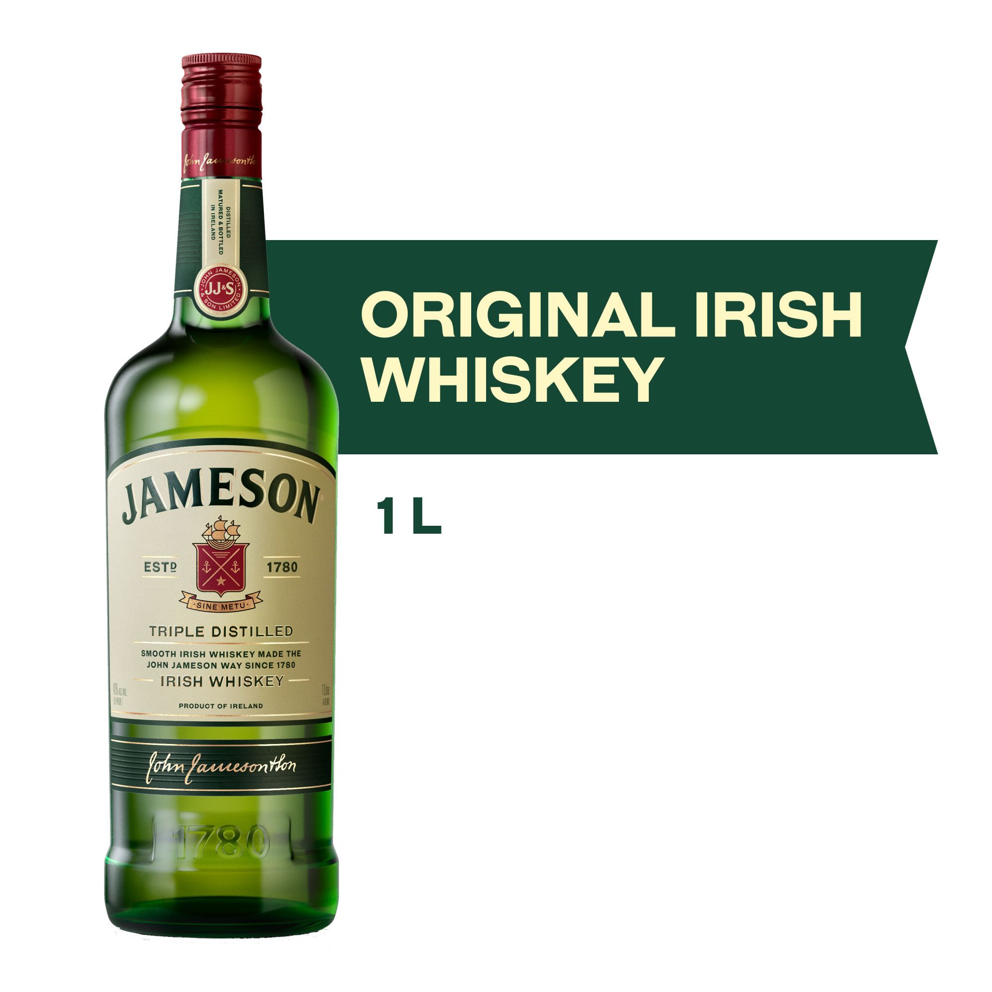 Includes: One 1 L bottle of Jameson Irish Whiskey; 80 proof or 40% alcohol by volume; Drink responsibly