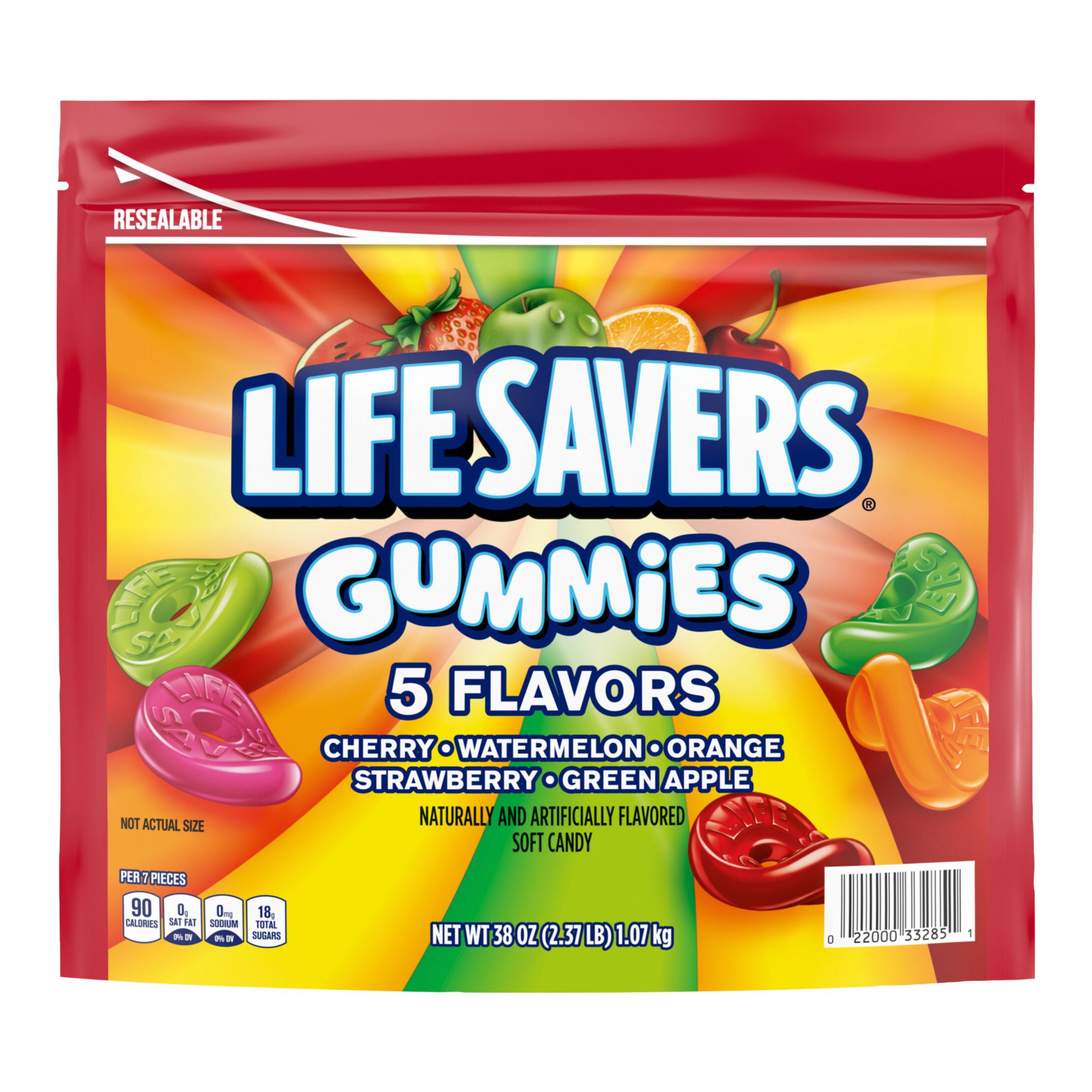 Handy resealable pouch Peanut-free Shelf life: 24 months Includes 3-lb. bag of 50 different assorted flavors