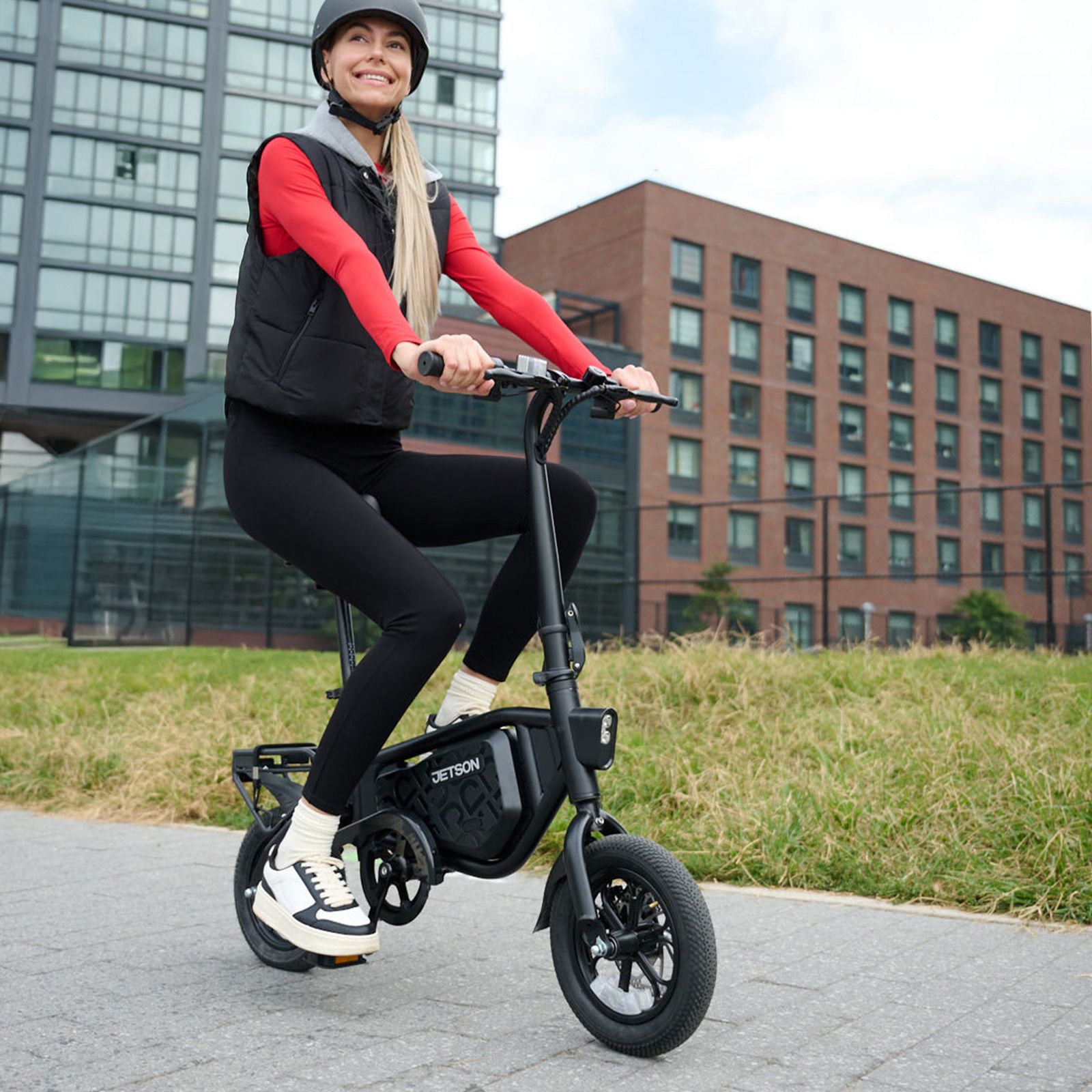 The Jetson Bolt Pro X merges the excitement of electric riding with a convenient, compact package – for “grab and go” electric riding at its best. With 3 ways to ride – using the throttle for all-out motor power, pedaling with electronic assistance, or clicking into cruise control – it's a versatile ride for both everyday use and extraordinary adventures. You can zip around urban streets one day, and embark on a scenic recreational ride the next. Adding to its versatility is the integrated RackIt Smart Cargo System rear rack, which takes the traditional rear cargo rack to the next level. RackIt’s available companion carry-all accessories – bags, baskets, and more – click onto and off of the rack for secure transport of whatever you need that day and easy swap out for another accessory the next.
