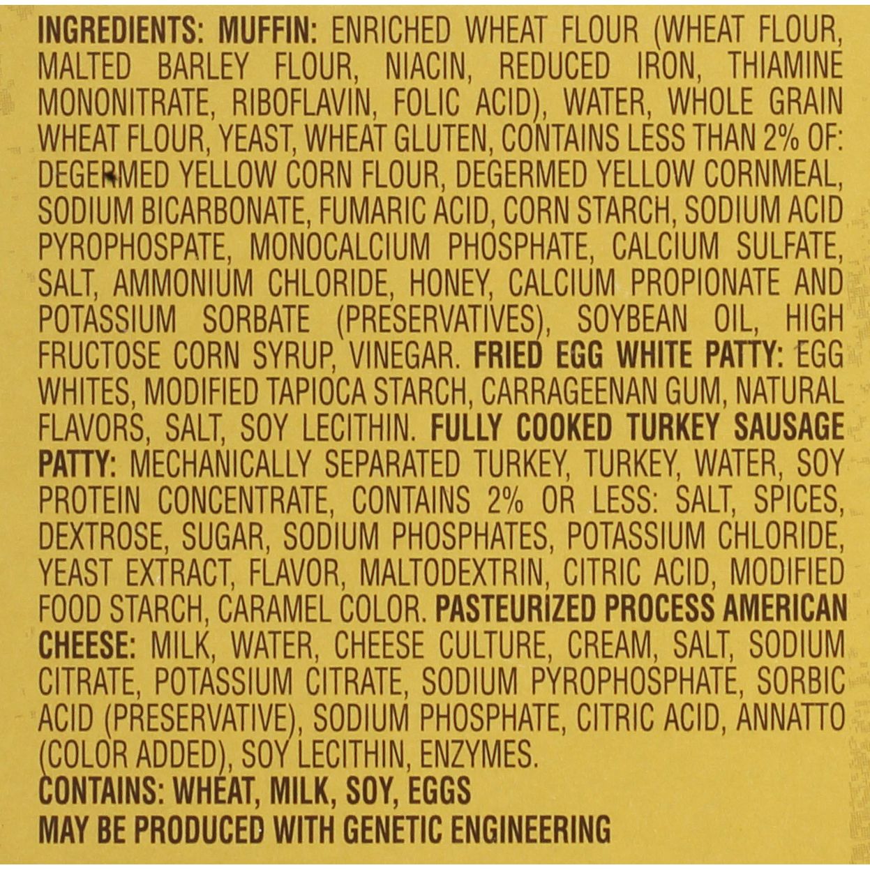 Excellent source of protein - 17g per serving Features savory turkey sausage, egg whites and melty cheese on a toasty English muffin Just 250 calories per sandwich Good source of whole grains Simply heat in the microwave and serve Product of USA Includes 12-count individually wrapped breakfast sandwiches