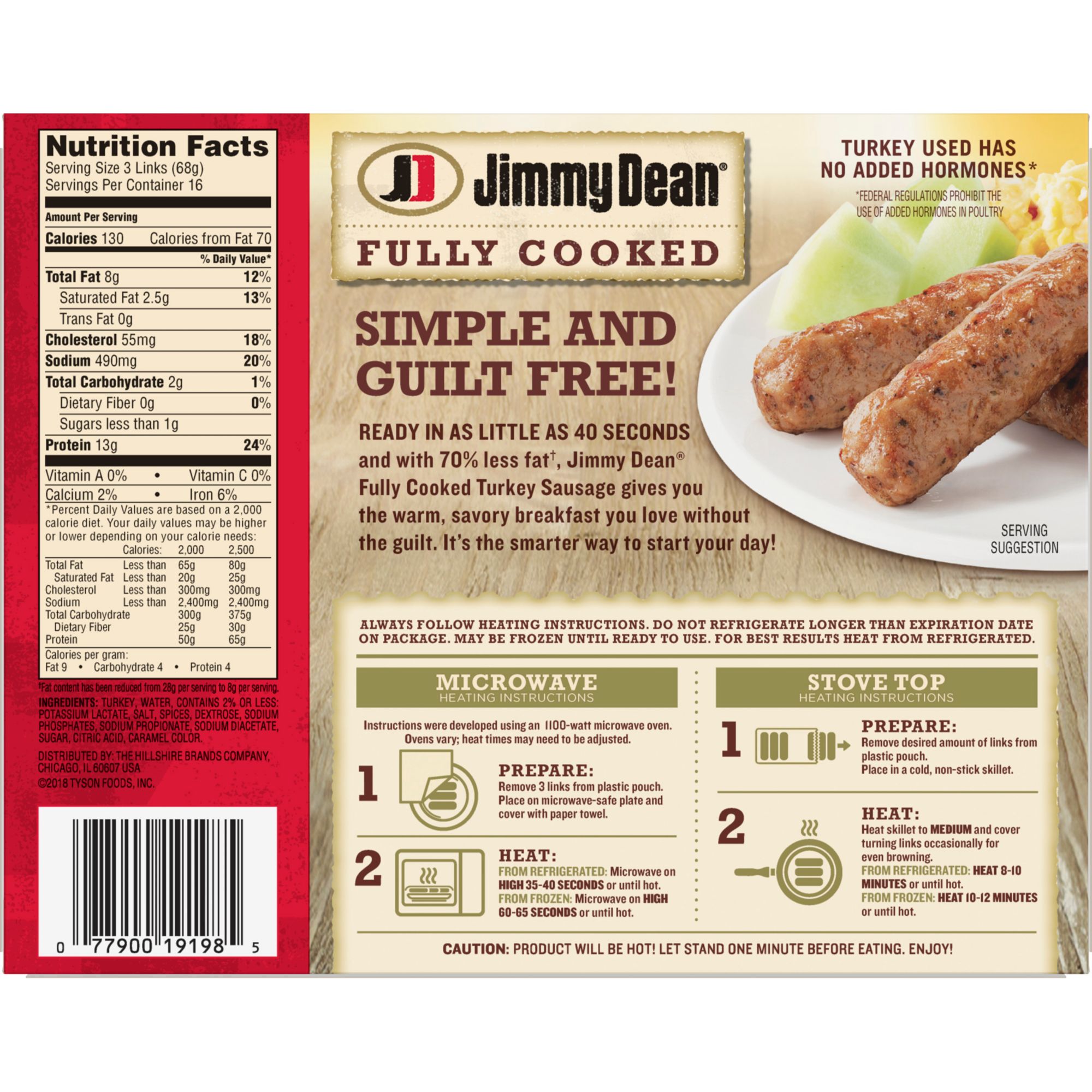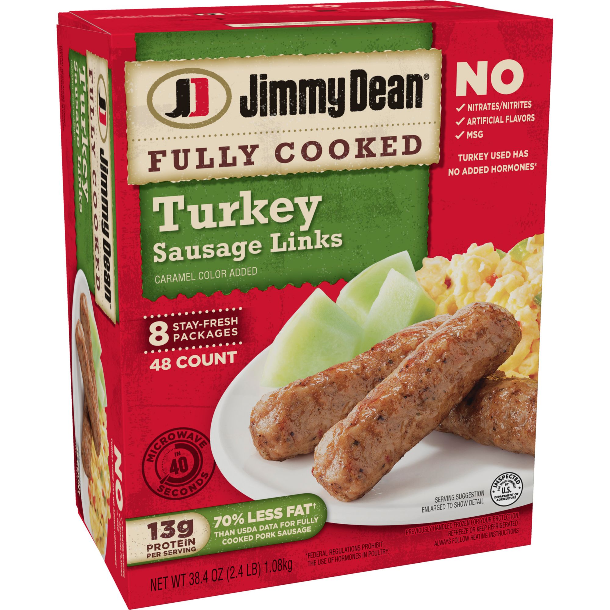 Celebrate the day and the delightful taste of Jimmy Dean turkey sausage links. Made with premium turkey, seasoned to perfection with our signature blend of spices, these savory sausage links have 12 grams of protein per serving to give you more fuel to power your day. Simple to prepare and ready in minutes, just microwave and serve with eggs and toast for a traditional breakfast or with pancakes and maple syrup for brunch. Includes one package of 48 links. Which pretty much sums up his magic formula for having a great day. Today, Jimmy Dean brings you many ways to add some sunshine to your morning.