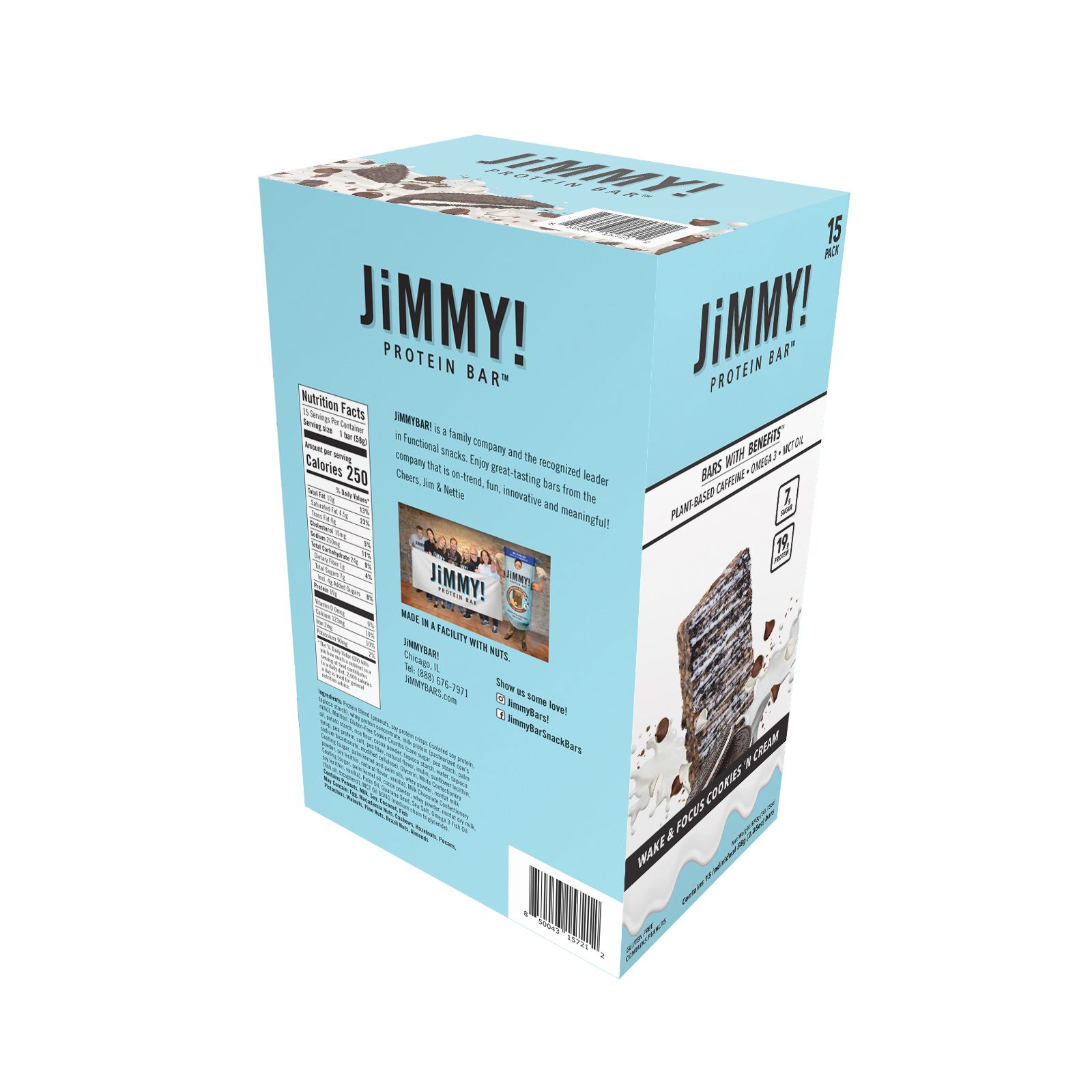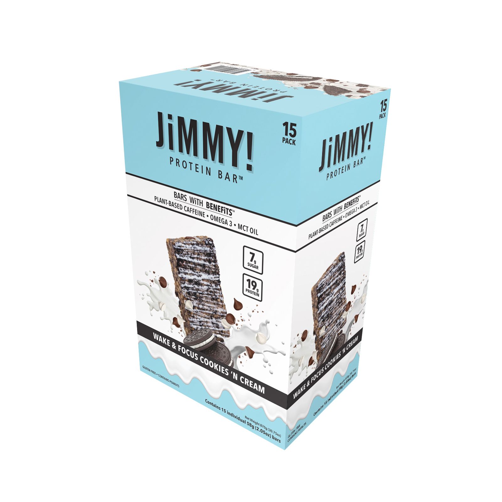 JiMMY! Wake & Focus Cookies N Cream Protein Bars, 19g Protein, 15 pk.