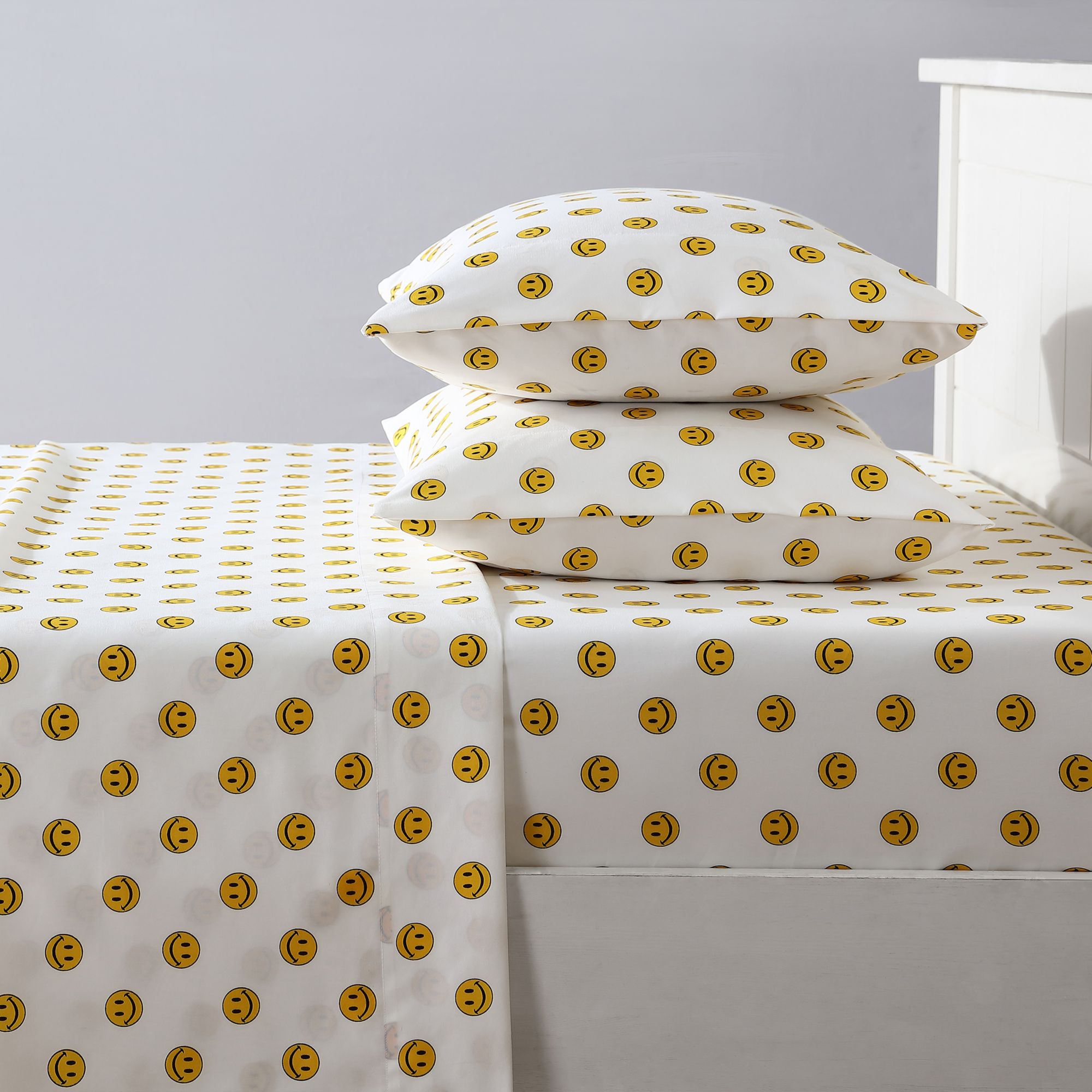 Joe Boxer Fun Prints Ultra Soft Happy Face White Sheet Set
