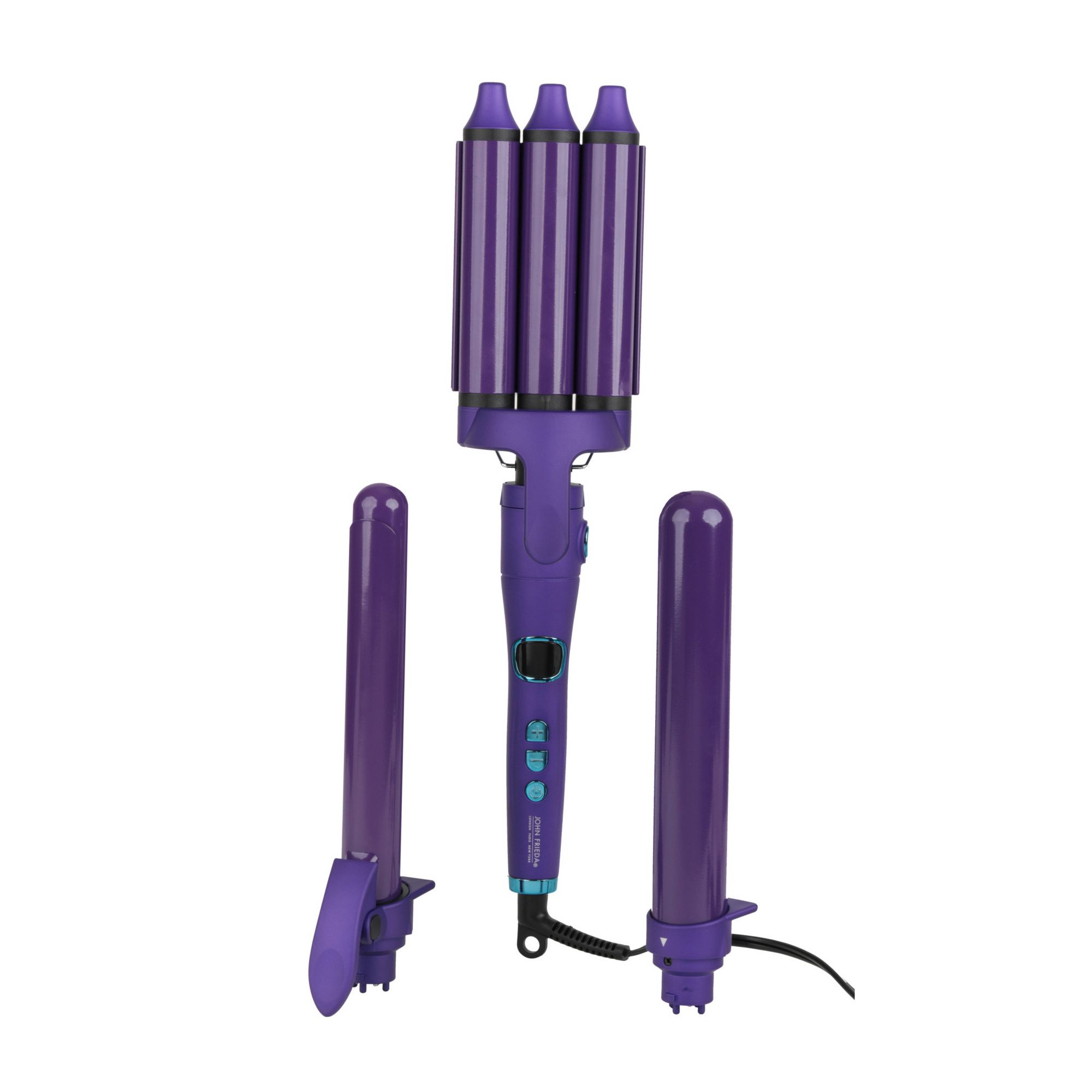 1.25" large wand, 1" curling iron, 1" triple barrel crimp hair waver, detachable base, user manual