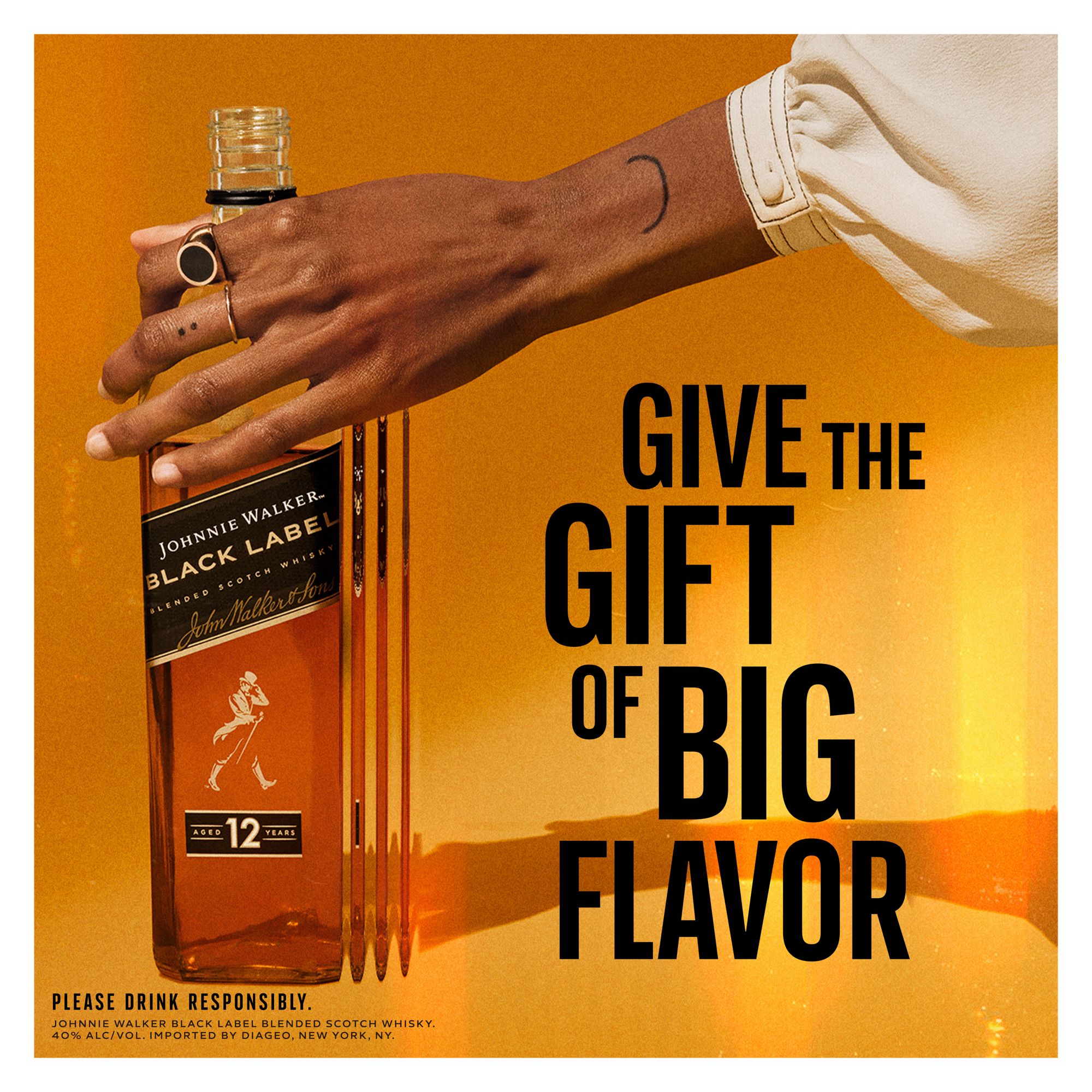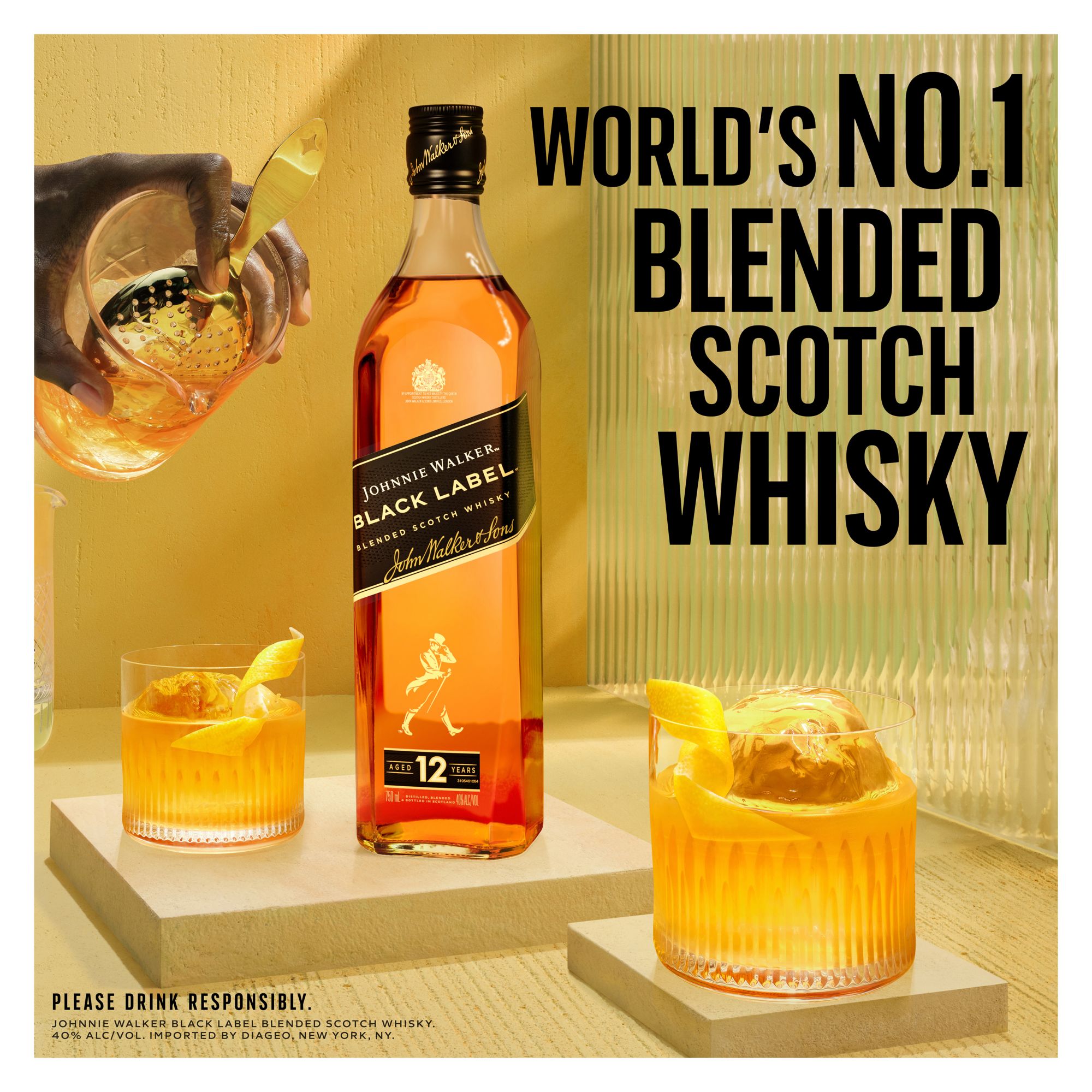 Indulge in the unmistakably big-tasting and vibrant Johnnie Walker Black Label Blended Scotch Whisky, full of flavor with the volume turned up. Each sip bursts with layers of smooth and delicious big flavors all proudly on show - creamy toffee, rich, sweet fruit and spicy vanilla, all perfectly wrapped in sweet smoke. Expertly crafted by the world's most experienced whisky makers, this blend brings together 29+ whiskies matured for at least 12 years to create the symphony of smooth and delicious flavors of Johnnie Walker Black Label. Johnnie Walker Black Label is an incredibly smooth balance of big flavors, where no matter how loud one note is, it never drowns another one out, making it a premium choice for any occasion. Includes one 80 proof 1.0 L bottle of Black Label Blended Scotch Whisky. Please drink responsibly.