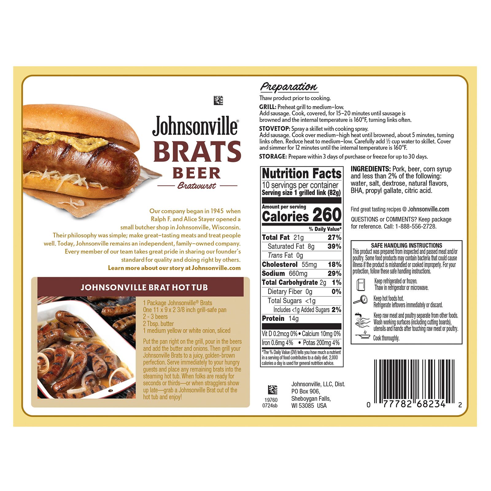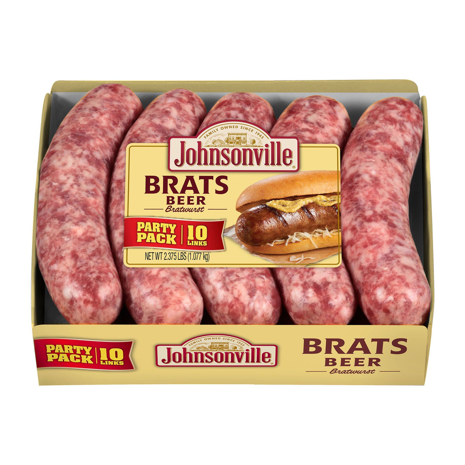 Includes 10 Johnsonville Beer Bratwursts