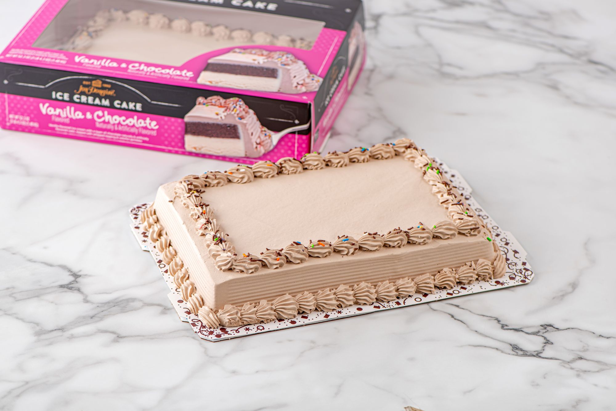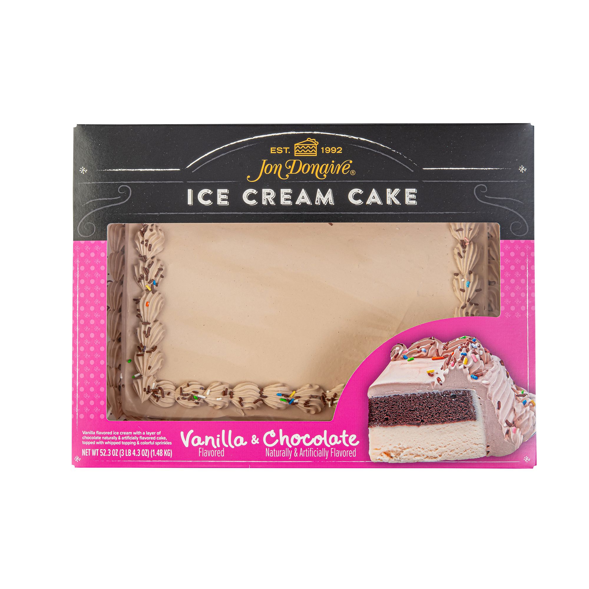 Jon Donaire Vanilla/Chocolate Ice Cream Cake, 1/4 Sheet, Serves 18