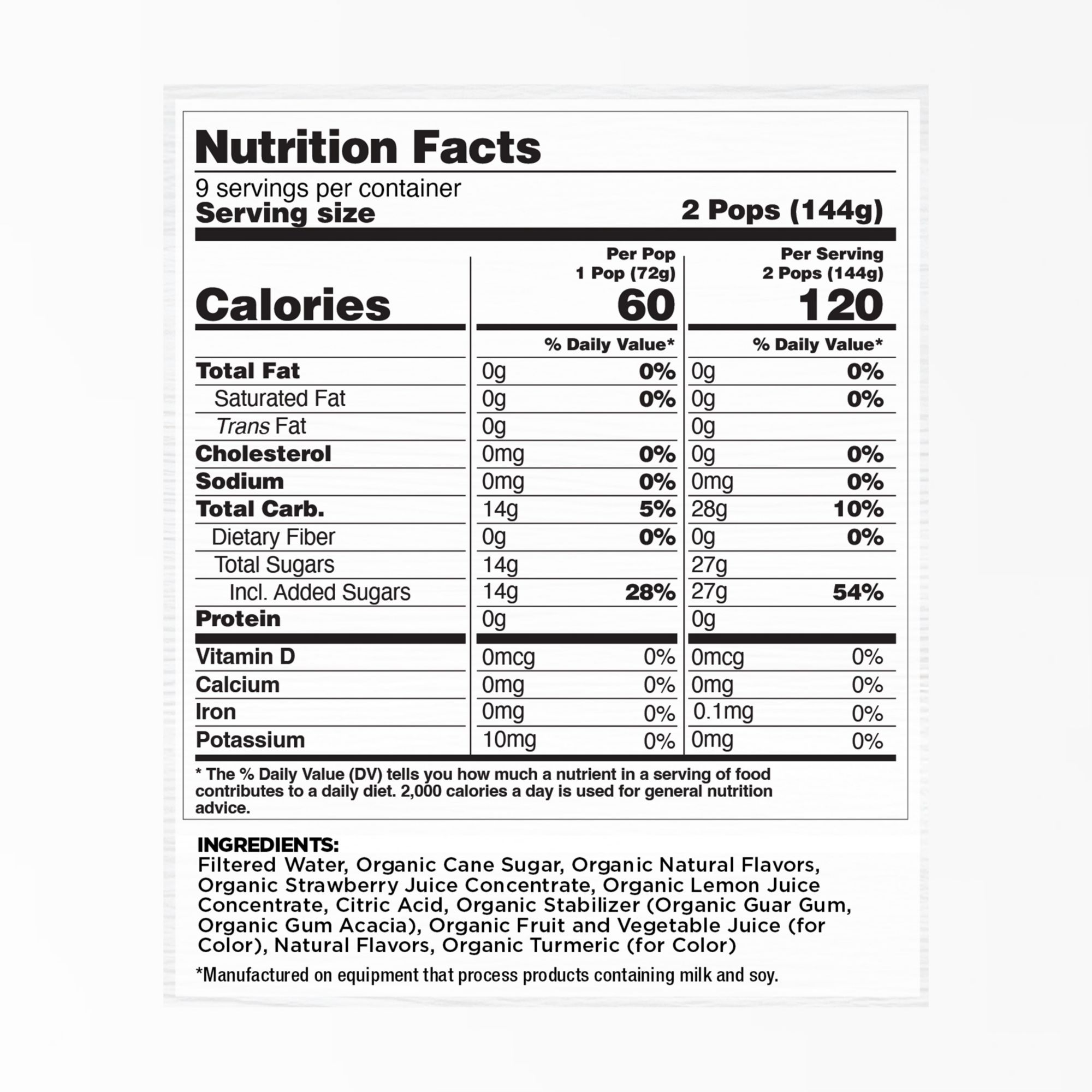 Includes organic berry lemonade pops, 16 ct.