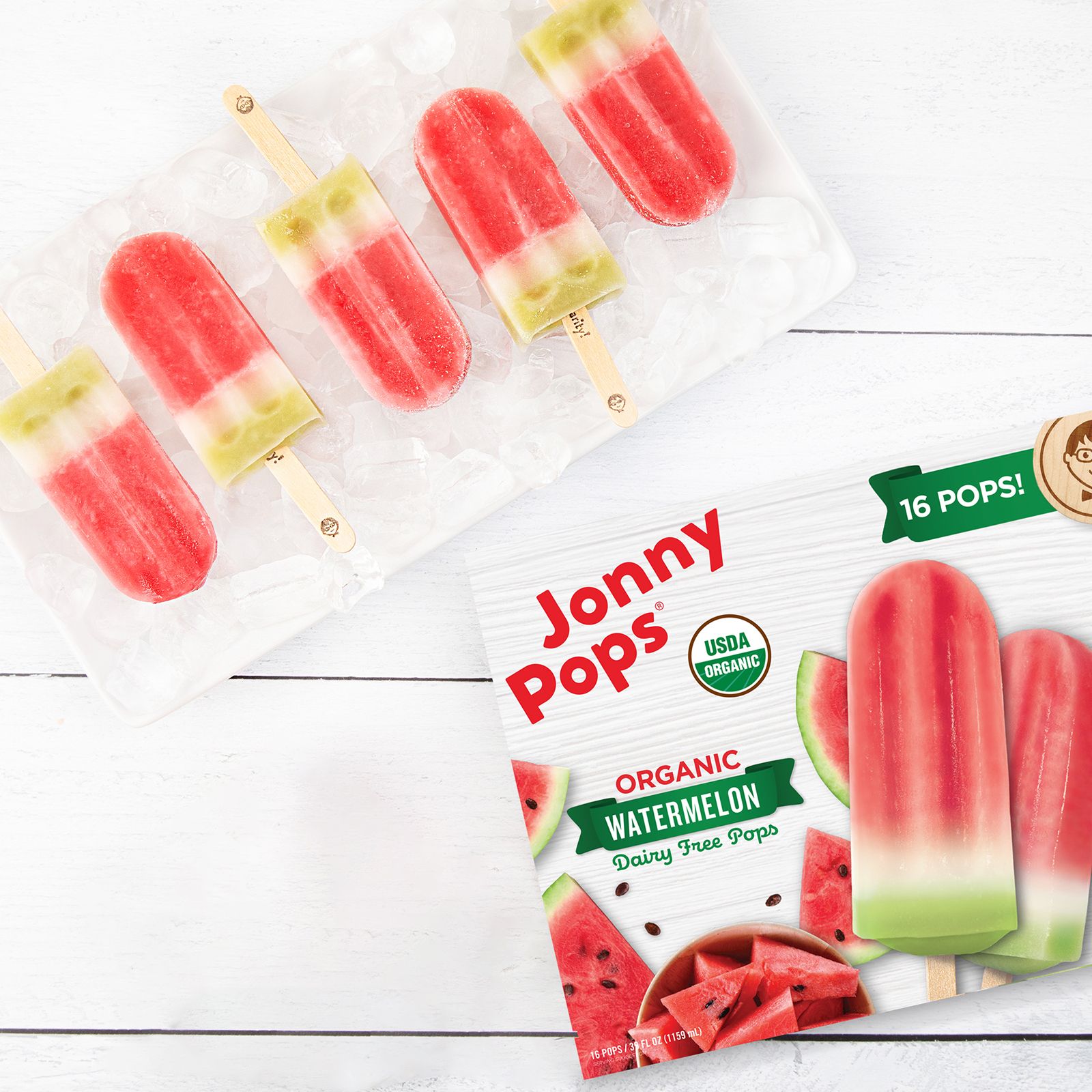 JonnyPops Organic Watermelon Pops are deliciously refreshing and look just like a slice of watermelon! Made with simple ingredients, and nothing artificial, they are a treat the whole family can enjoy. These pops are USDA Certified Organic, gluten free, vegan, Kosher and are made in a peanut free facility.