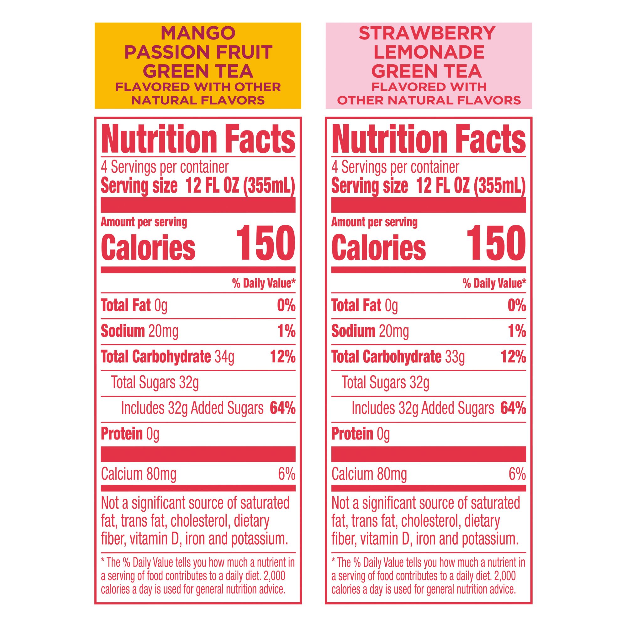 Ingredients: Brewed Green Tea (Water, Green Tea Concentrate), Boba Bubbles (Water, Cane Sugar, Calcium Lactate, Citric Acid, Sodium Alginate, Xanthan Gum, Calcium Chloride, Carboxymethyl Cellulose), Cane Sugar, Natural Flavor, Lemon Juice Concentrate, Ascorbic Acid, Calcium Lactate, Carmine Color. Brewed Green Tea (Water, Green Tea Concentrate), Boba Bubbles (Water, Cane Sugar, Calcium Lactate, Citric Acid, Sodium Alginate, Xanthan Gum, Calcium Chloride, Carboxymethyl Cellulose), Cane Sugar, Natural Flavors, Lemon Juice Concentrate, Ascorbic Acid, Calcium Lactate.
