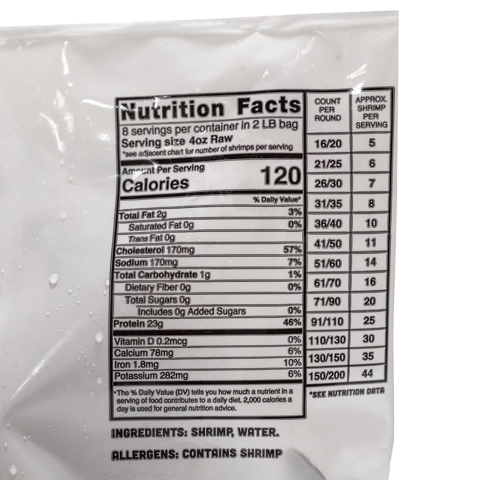 Includes 16/20 wild caught shrimp, 2 lbs.
