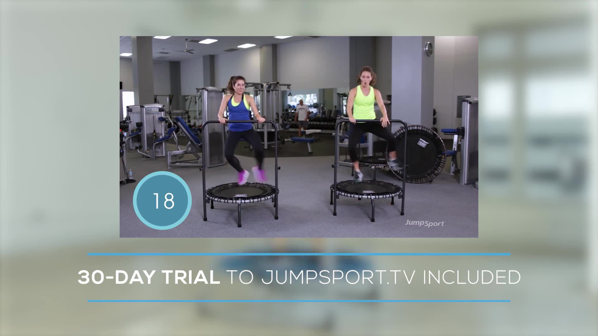 Realize your full potential on the JumpSport trampoline with the included workout DVD. The Barre routine (25 mins) utilizes low-impact, high-intensity movements to improve your flexibility and mobility. The Cardio routine (20 mins) employs bouts of rapid exercise to improve cardiovascular function. Lastly, the Strength routine (25 mins) helps you develop a strong, supple, and toned upper and lower body.