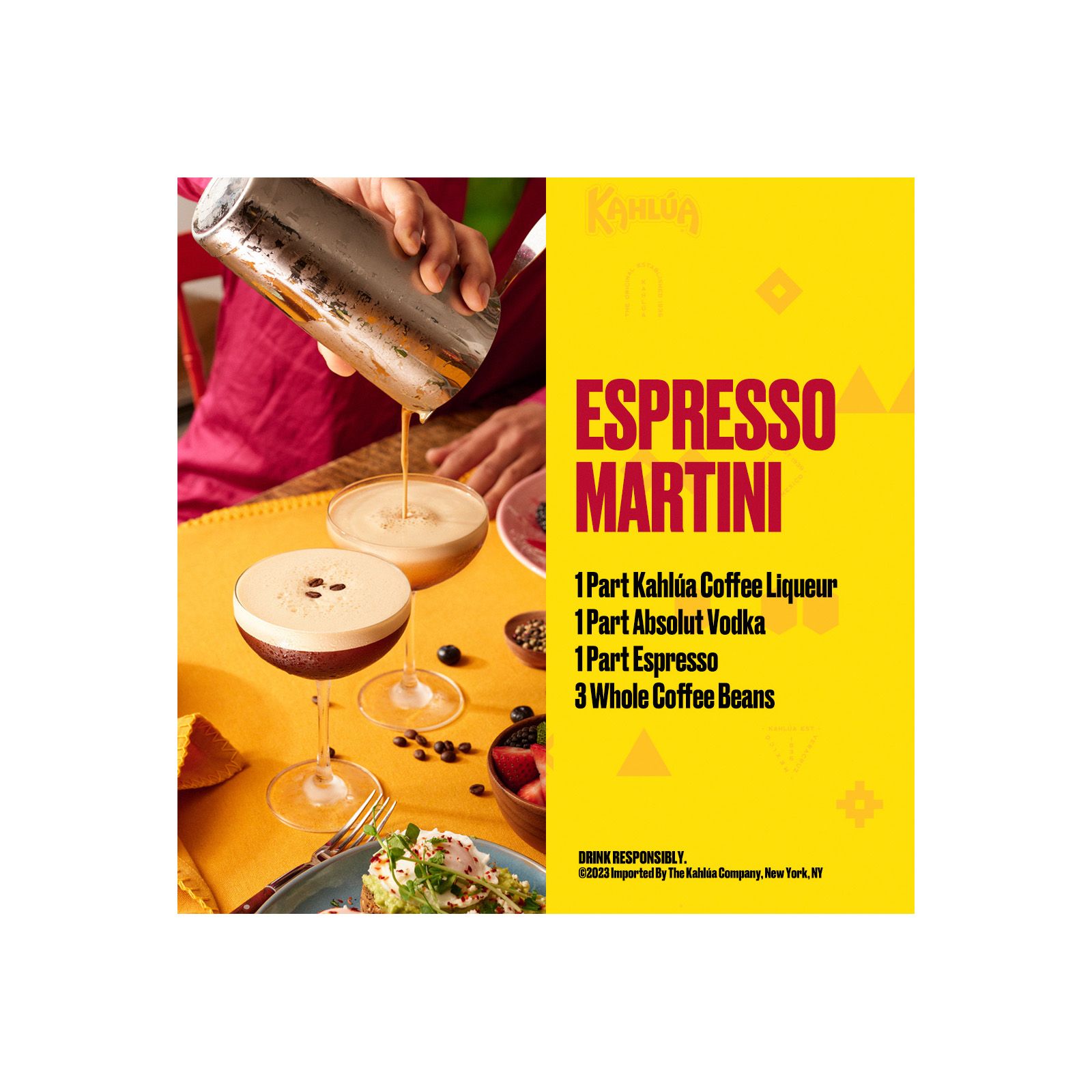 Kahlua Original is a versatile rum and coffee liqueur perfect for enjoying in your favorite cocktails during special times with friends and family. The delectable flavors of savory coffee, delicate vanilla and luscious caramel are carefully crafted. This liqueur features high-quality ingredients like the finest Arabica coffee and sugarcane from rural Veracruz, Mexico. A treat for any coffee lover, the easy-drinking, smooth liquor can be enjoyed over ice or in classic alcohol drinks and cocktails like a White Russian, Espresso Martini or Mudslide. Try Kahlua Original in dessert recipes or in your favorite cup of coffee or cold brew. Add a twist to your Kahlua-infused creations with mint leaves or whipped cream to satisfy any sweet tooth. Kahlua is committed to partnering with local farmers from the Mexican countryside, as an approach to supporting sustainable development. Enjoy Responsibly.