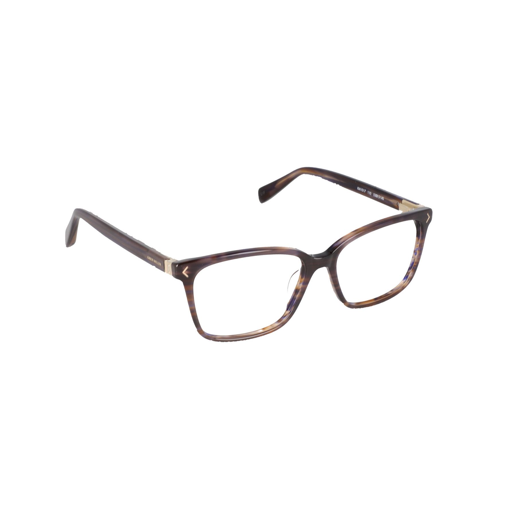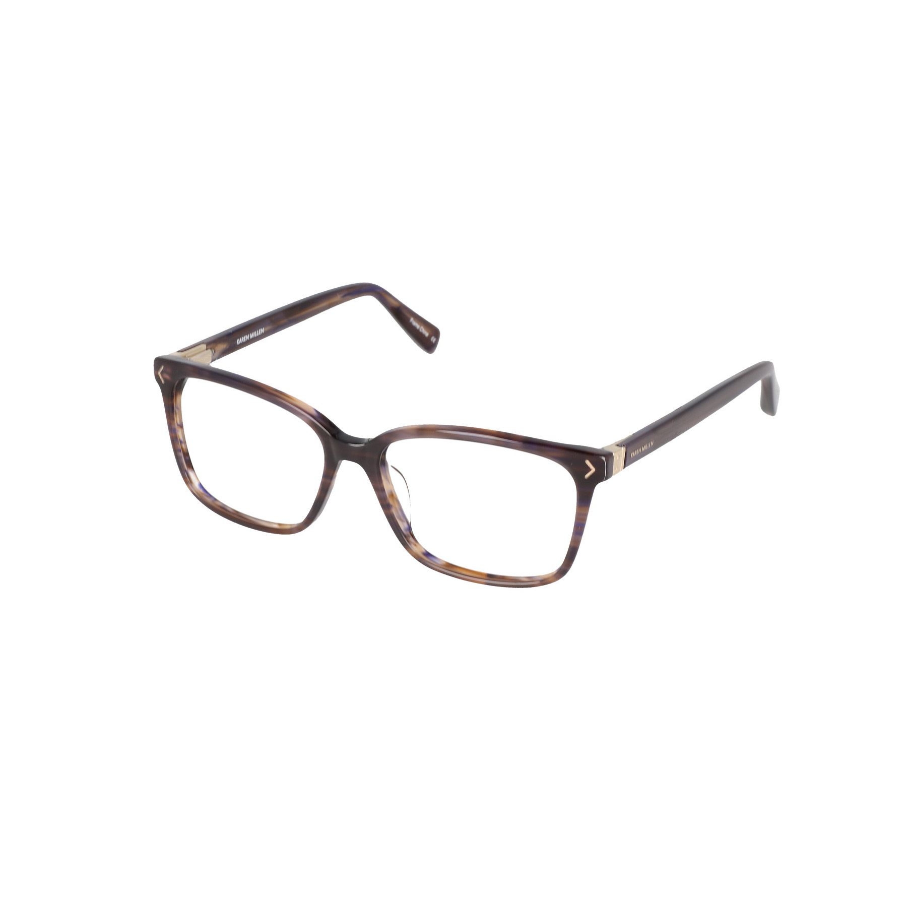 Karen Millen KM1017 is a handmade front frame with an updated rectangular shape for a trendy, classic fit. The acetate temples showcase the designer's logo on the side.