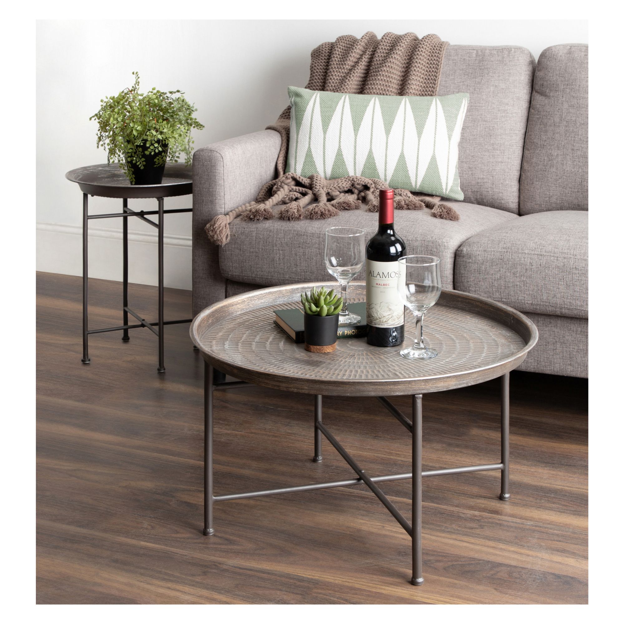 Kate and Laurel Mahdavi Boho-Chic Hammered Metal Tray Coffee Table - Brushed Silver