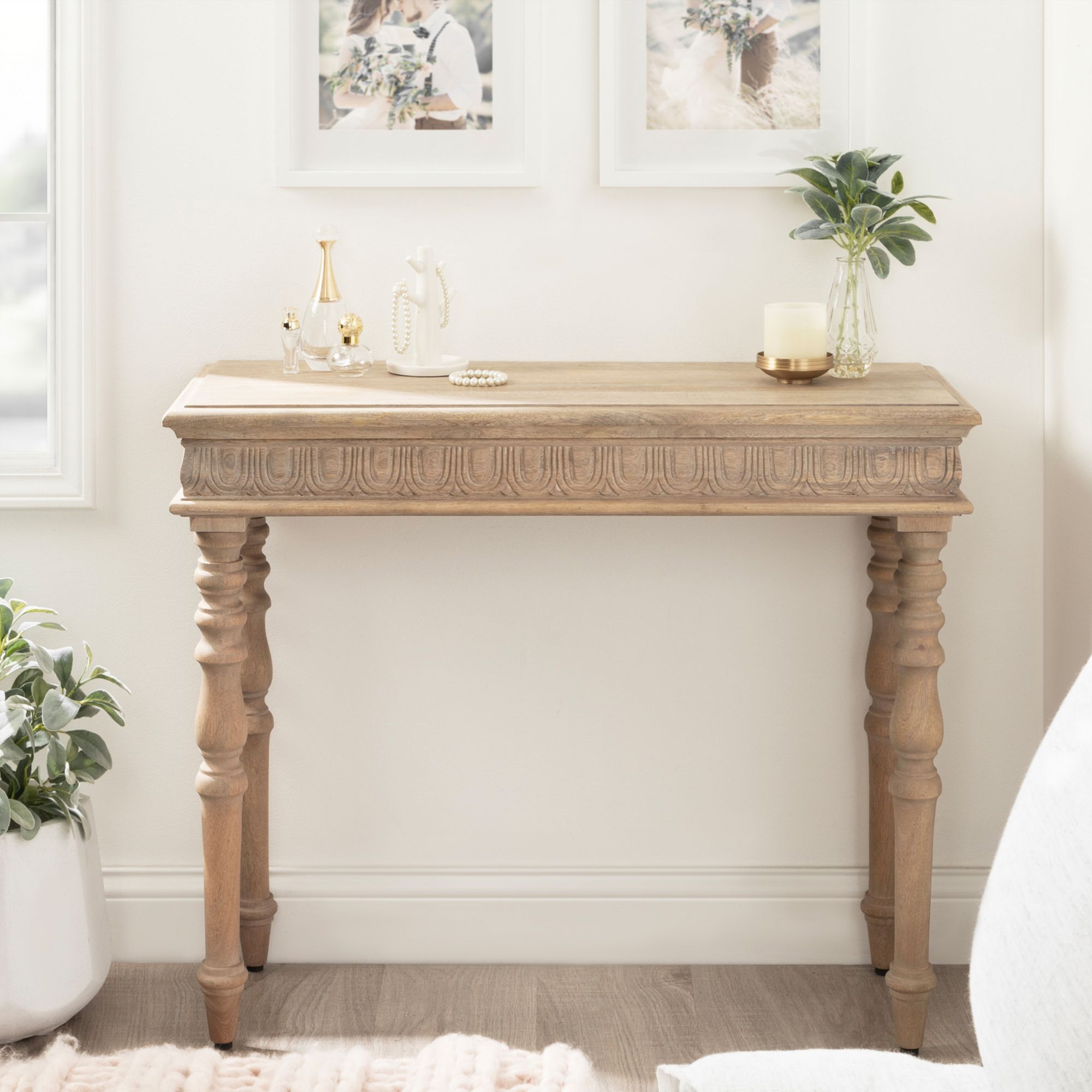 Kate and Laurel Patresa Traditional Carved Wood Console Table - Natural
