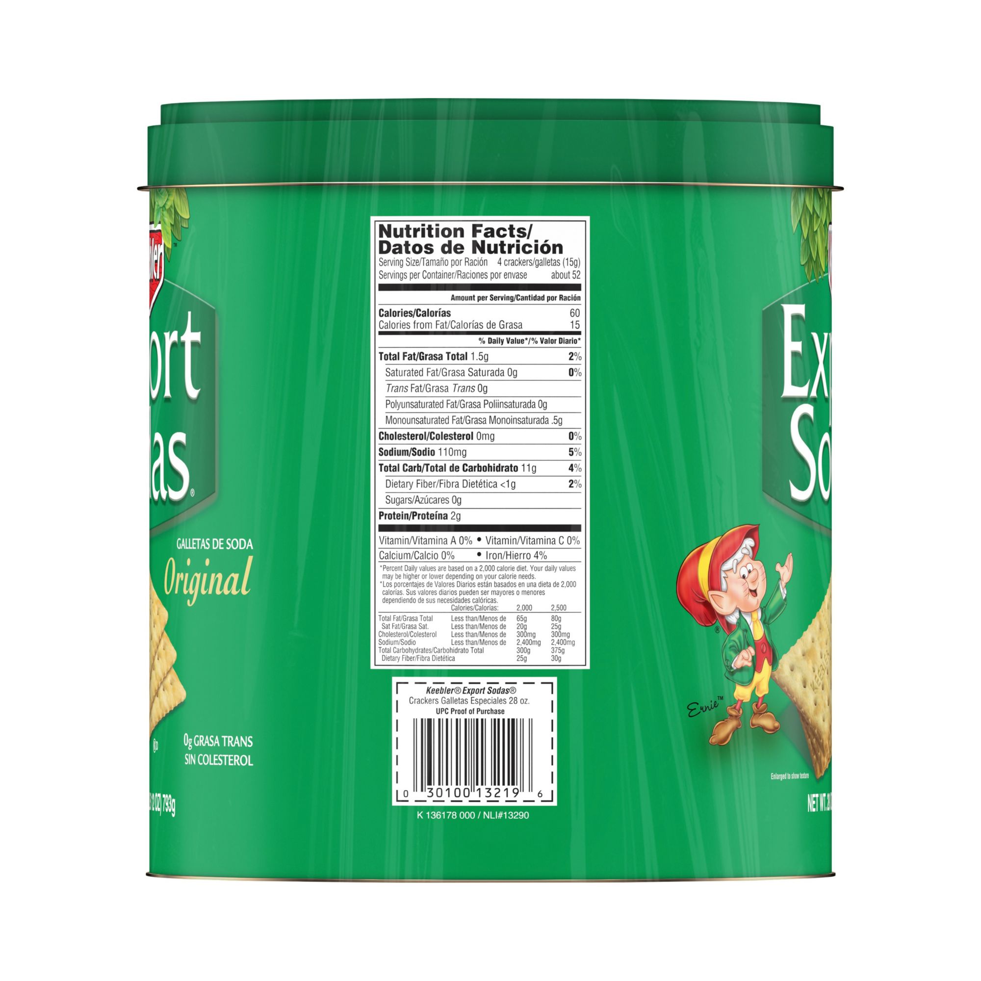 Crispy, crunchy, and a little bit toasty, Keebler's Original Export Sodas Crackers are made with our tried and true recipe of enriched flour, baking soda, yeast, and a sprinkle of salt. With a distinctively dry and crisp texture, our Export Sodas Crackers are ideal for snacking and go great with soups and salads, savory spreads, dips, meats, and cheeses. These cholesterol-free crackers are made with 0 grams trans fat (0 grams polyunsaturated fat; 0.5 grams monounsaturated fat) for guilt-free munching. Pack some in your lunchbox for a tasty side to your meal or in your tote for a tasty treat while on the go. Perfect for lovers of crunchy, savory foods, these crackers make excellent additions to care packages and gift boxes when your favorite snacker is far away. Lay some out for a party spread when it's game time, share them with friends around the lunch table, or just keep them all to yourself - the delicious, savory options are endless.