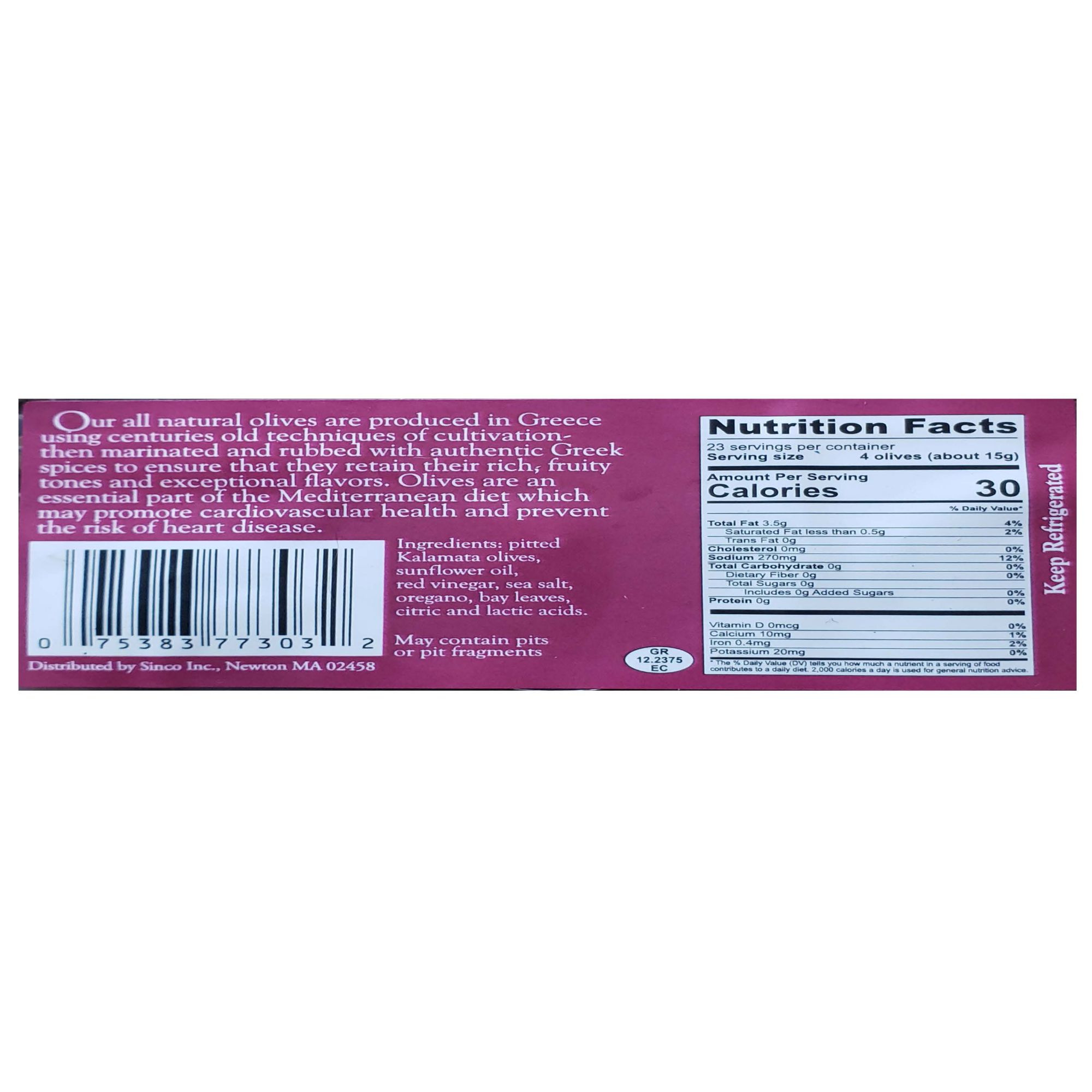 Kalamata olive is large with a smooth, meaty texture Often used as table olives Perfect for the entire family to enjoy. Includes 12.3 oz. of Keepos Kalamata Olives