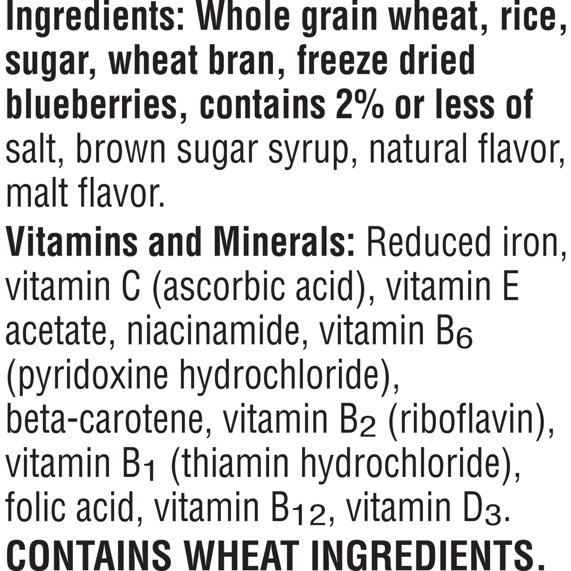 A great tasting start to your day with crunchy wheat and rice flakes with real whole blueberries