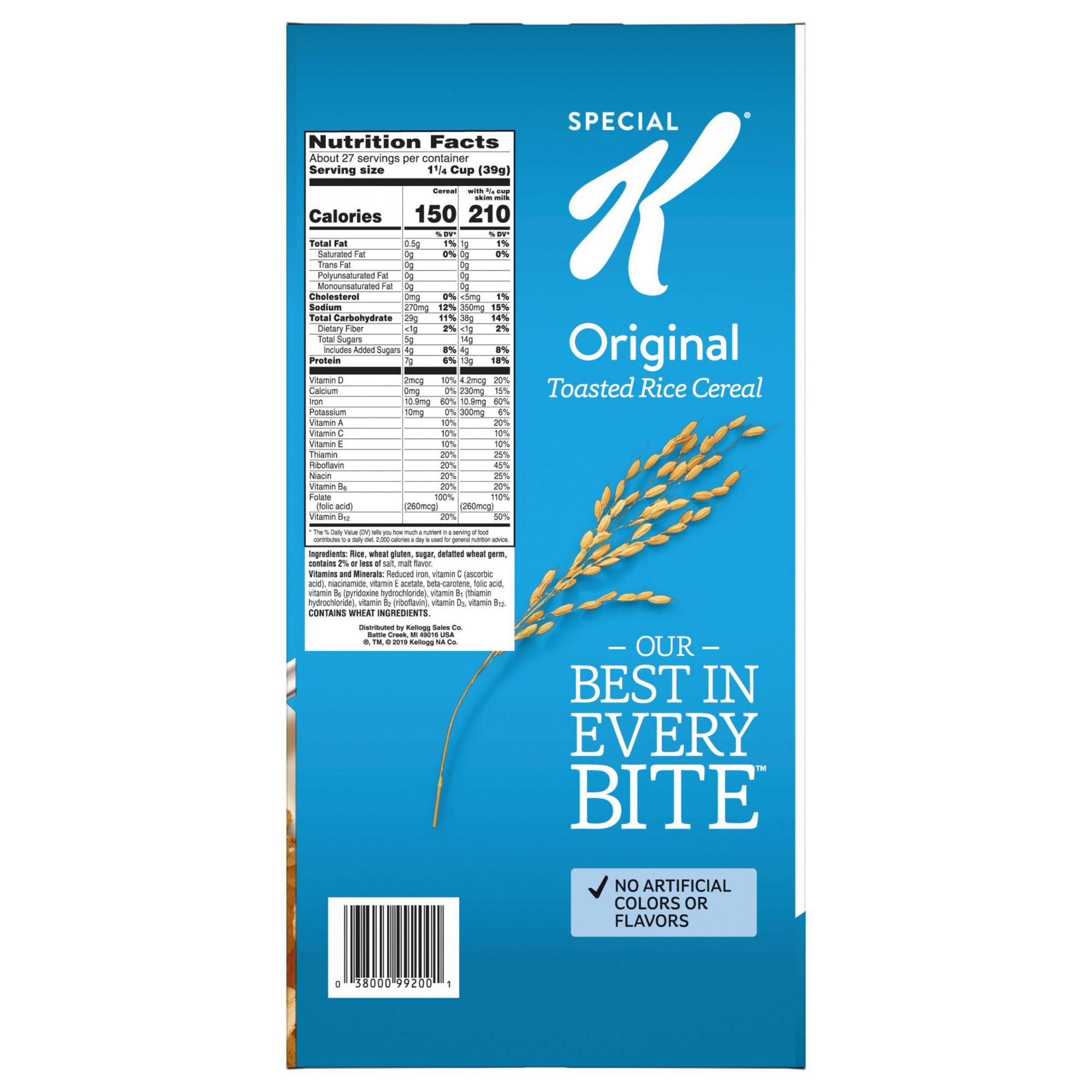 Start your day off right with the simple goodness of Special K Cereal Original a deliciously crafted, wholesome cereal that loves you back with each healthy spoonful. This filling cereal is made with light, crispy rice flakes that are perfectly toasted and lightly sweetened to energize you for the day ahead. Just as nutritious as it is delicious, this breakfast cereal contains essential vitamins and minerals to help keep you going strong. Whether you enjoy a bowlful at breakfast time, as an afternoon snack at the office, or straight from the box after your workout, Kellogg's Special K Original cereal lets you feed your strength with each irresistible bite.