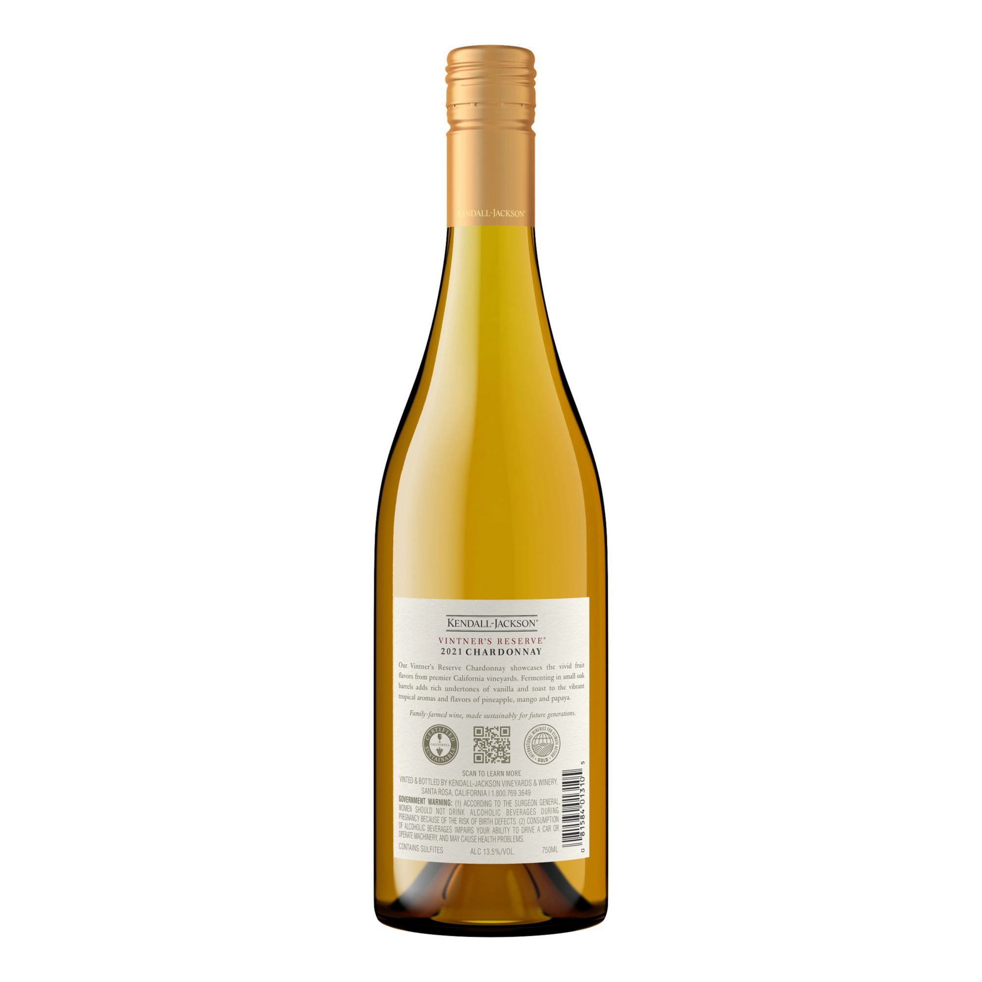One 750 ml bottle of Kendall-Jackson Vintner's Reserve Chardonnay White Wine