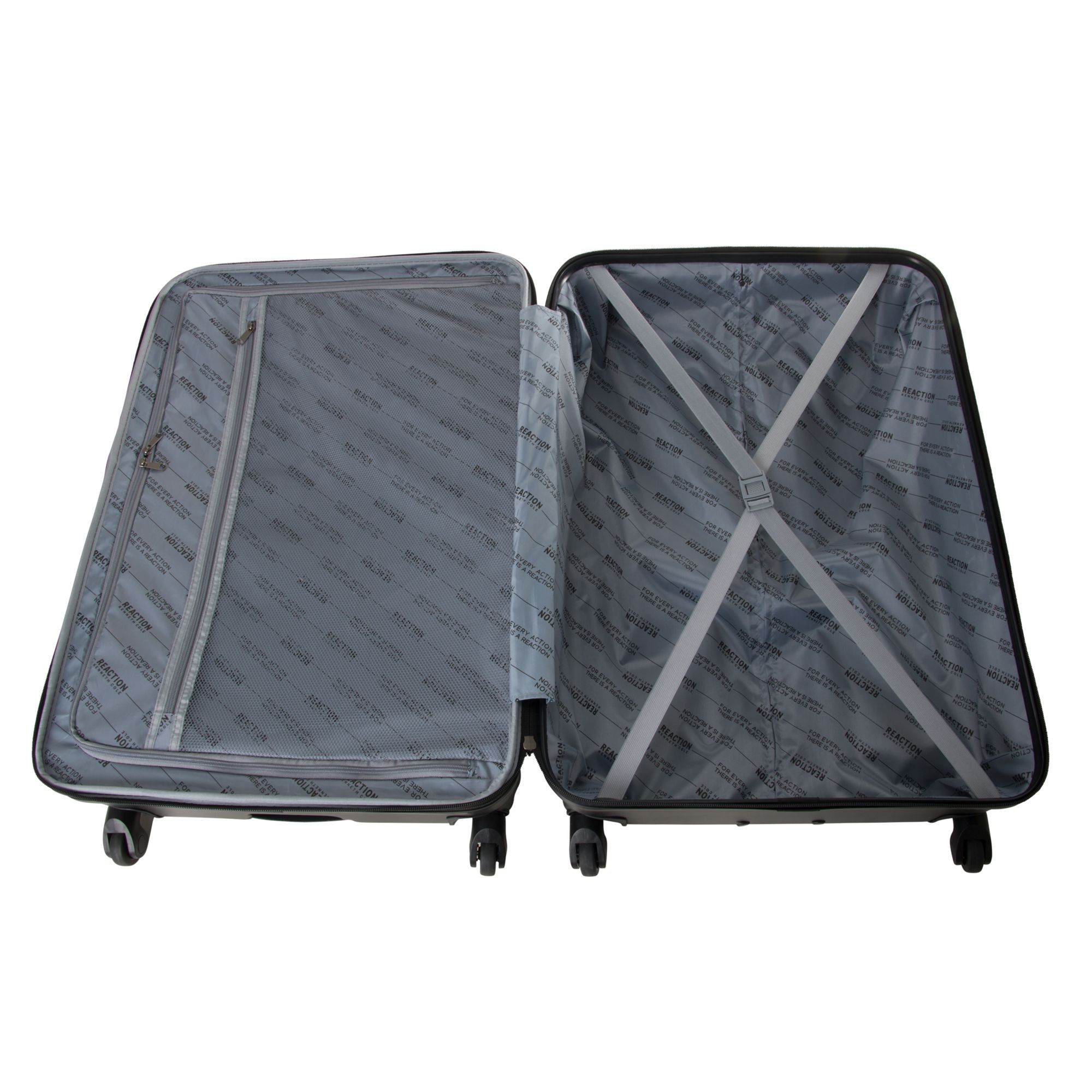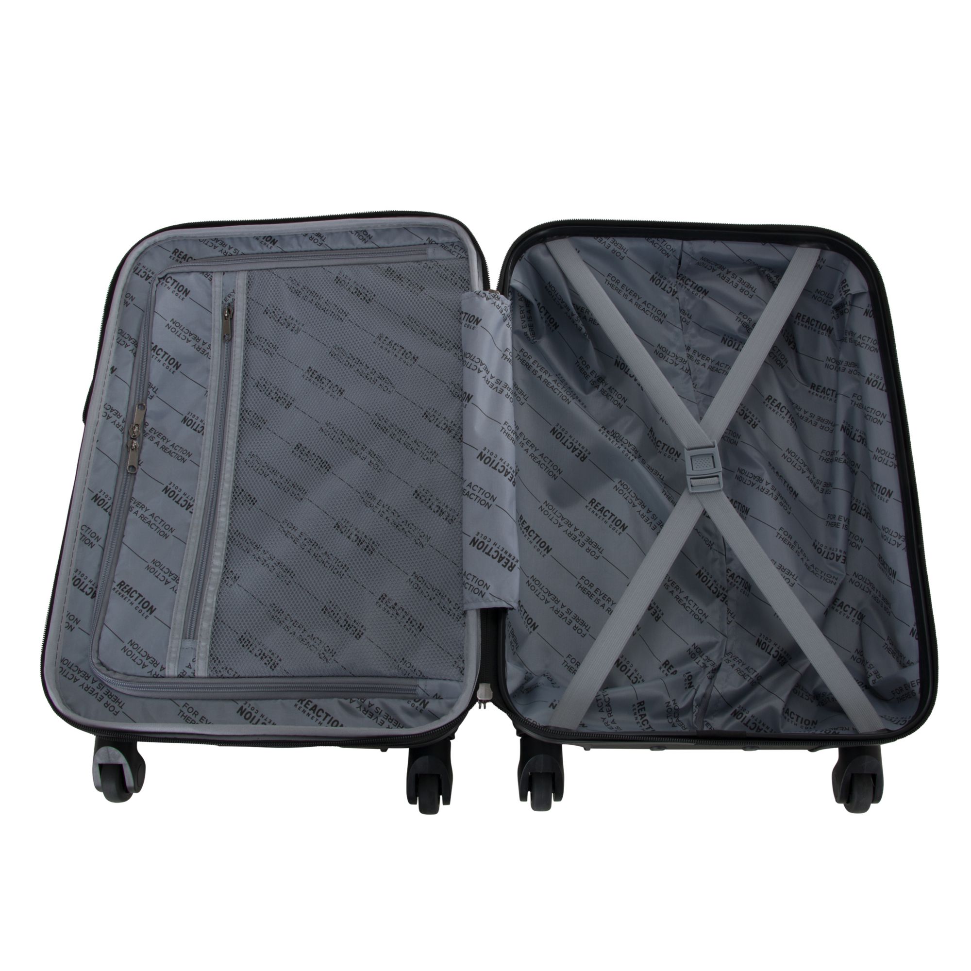 Make traveling a care-free experience with this Kenneth Cole Reaction 20" and 28" ABS Expandable 4-Wheel Two Piece Luggage Set. Lightweight uprights with sturdy locking trolley handle all feature molded side feet and molded corner guards for ultimate impact resistance and protection. This luggage is fully lined, has a tear-resistant interior and allows for dual sided packing with zipper pockets, side hanging pocket, and garment straps to hold your contents in place. There is also a flexible top, side, and bottom grab handles that allow you to easily carry or maneuver your luggage. This expandable, four-wheel spinner luggage set with a modern silhouette is perfect for any traveler.