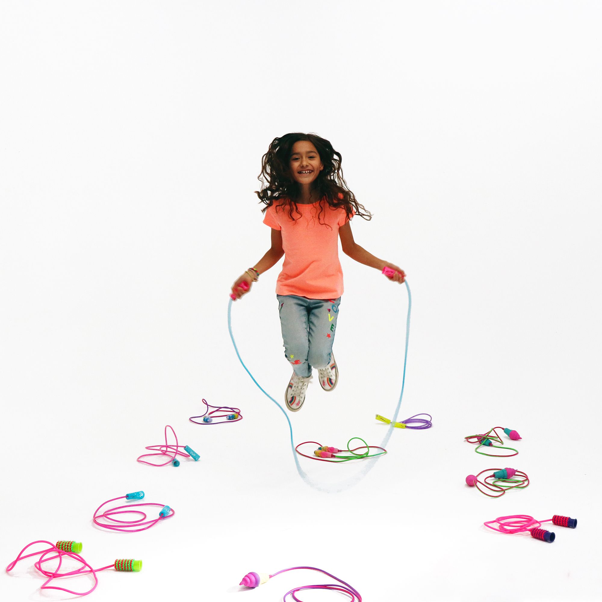 Glitter rope Motion activated light-up hopper Opalescent, metallic looks How long can you hop? Age ranges: 9+ Includes one light-up ice jump rope, one ultra light-up ice hopper