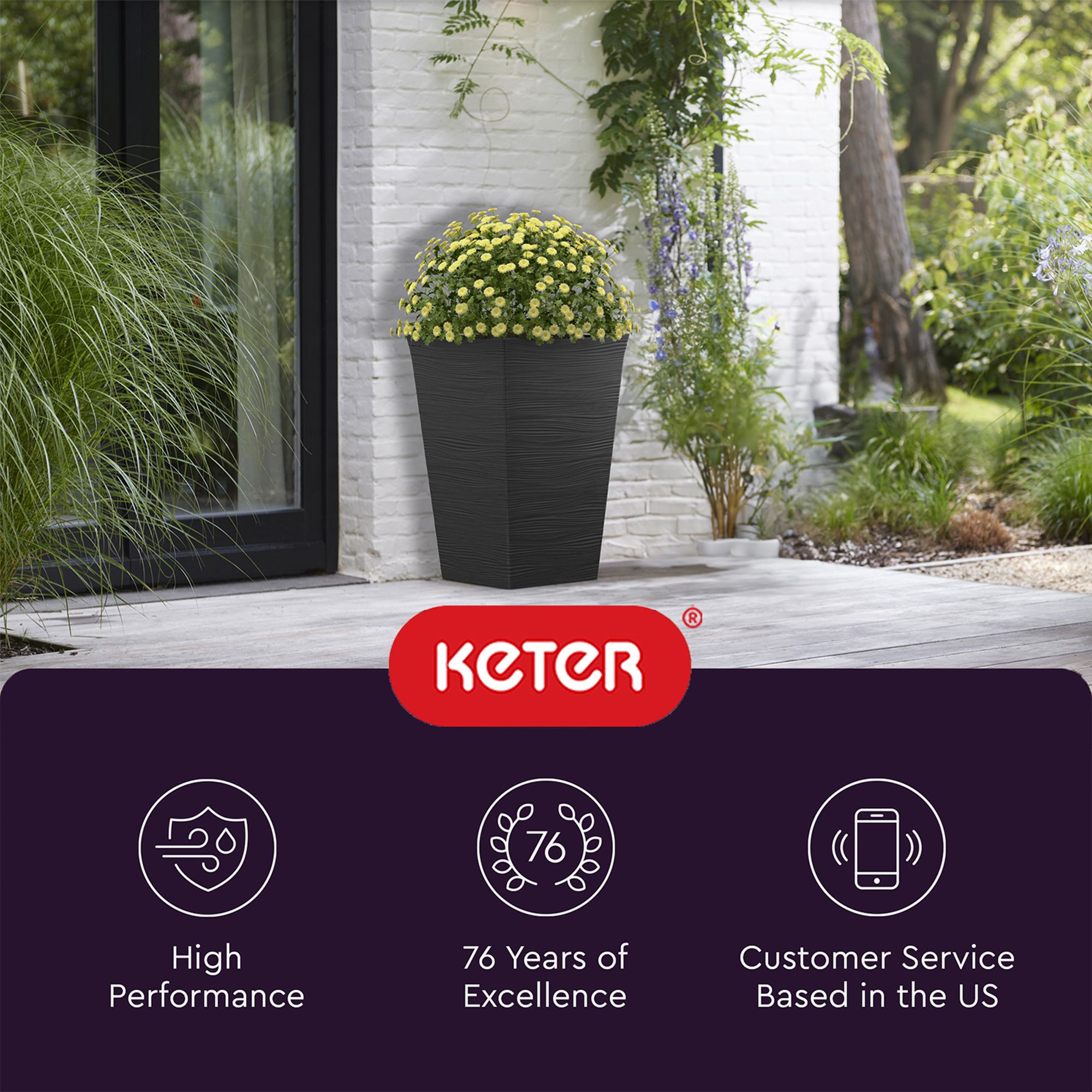 Keter Wave Planter Durable Resin Modern Large Flower Pot Tapered Planters for Outdoor and Indoor, Graphite
