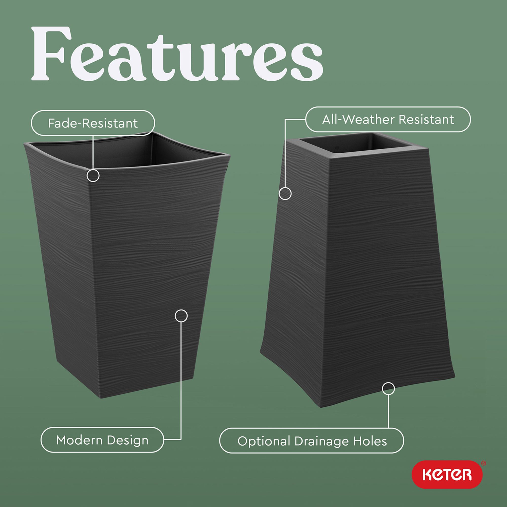 (19 Items)Keter Wave Planter Durable Resin Modern Large Flower Pot Tapered Planters for Outdoor and Indoor, Graphite