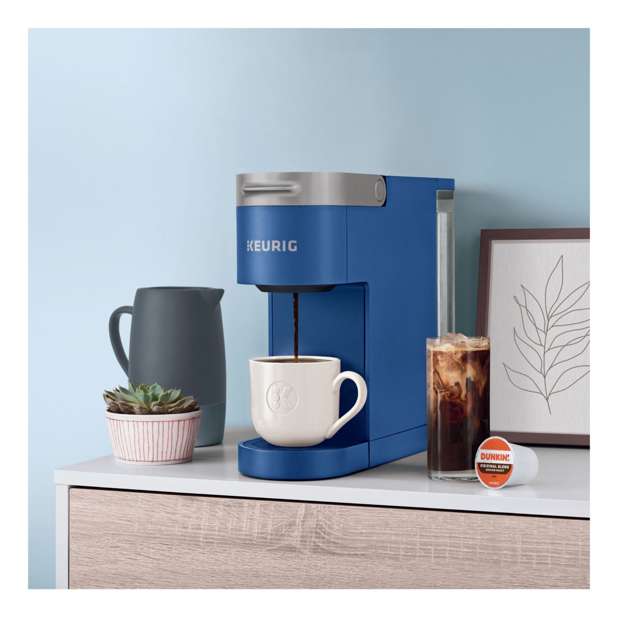 Introducing the Keurig K-Slim + ICED brewer. Full-flavored hot coffee and refreshing iced – always easy, always right. Whether it’s a cup of hot to start the day off or an iced to take an afternoon break, now you finally can have both with the ease of Keurig. The innovative Brew Over Ice feature automatically adjusts brew temperature starting hotter to help extract full flavor, then cooling down so there’s less ice melt for vibrant, balanced flavor – all in just two minutes. The 46 oz. removable water reservoir allows you to make up to four eight-ounce cups before refilling, so you don’t need to worry about measuring out your next cup or always refilling when you want to enjoy fresh coffee. At less than five inches wide, the brewer fits neatly on your countertop. For hot coffee choose from three cup sizes 8,10, or 12 oz. For iced coffee the Brew Over Ice feature brews at 6 oz., the optimized size and temperature for the ideal over ice experience.
