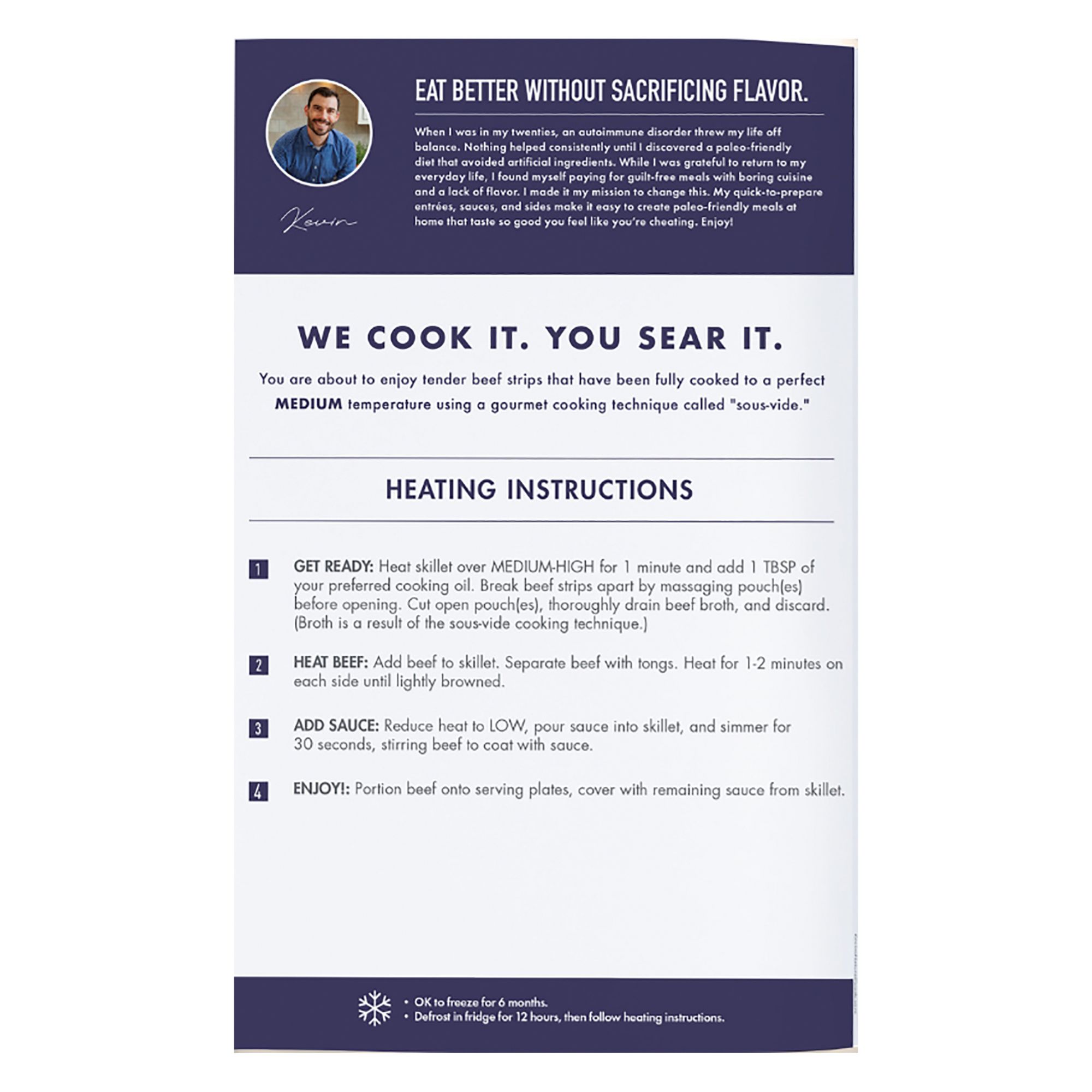 Tender chicken breast strips paired with a soy-free Bulgogi sauce made with coconut aminos, garlic, and roasted sesame. Get ready to fall head-over-heels for sous-vide chicken, perfectly cooked to remain juicy and tender. Each chicken entrée includes a delicious Gluten-Free, Paleo and Keto-Certified sauce. It’s a win-win-win! These chicken entrees include chicken raised without antibiotics, and are certified paleo, certified gluten free, soy free, and dairy free. Kevin's Natural Foods' mission is to empower even the busiest people to eat clean without sacrificing flavor. Their secret? Clean ingredients! They replace not so good ingredients with natural ones that add taste to every bite. Including no refined sugars! Kevin’s is the culinary antidote to busy nights in need of a fast, healthy solution to the daily 'what’s for dinner’ dilemma. They’ve made it easy so that you can create meals at home that help you eat clean and live happily.