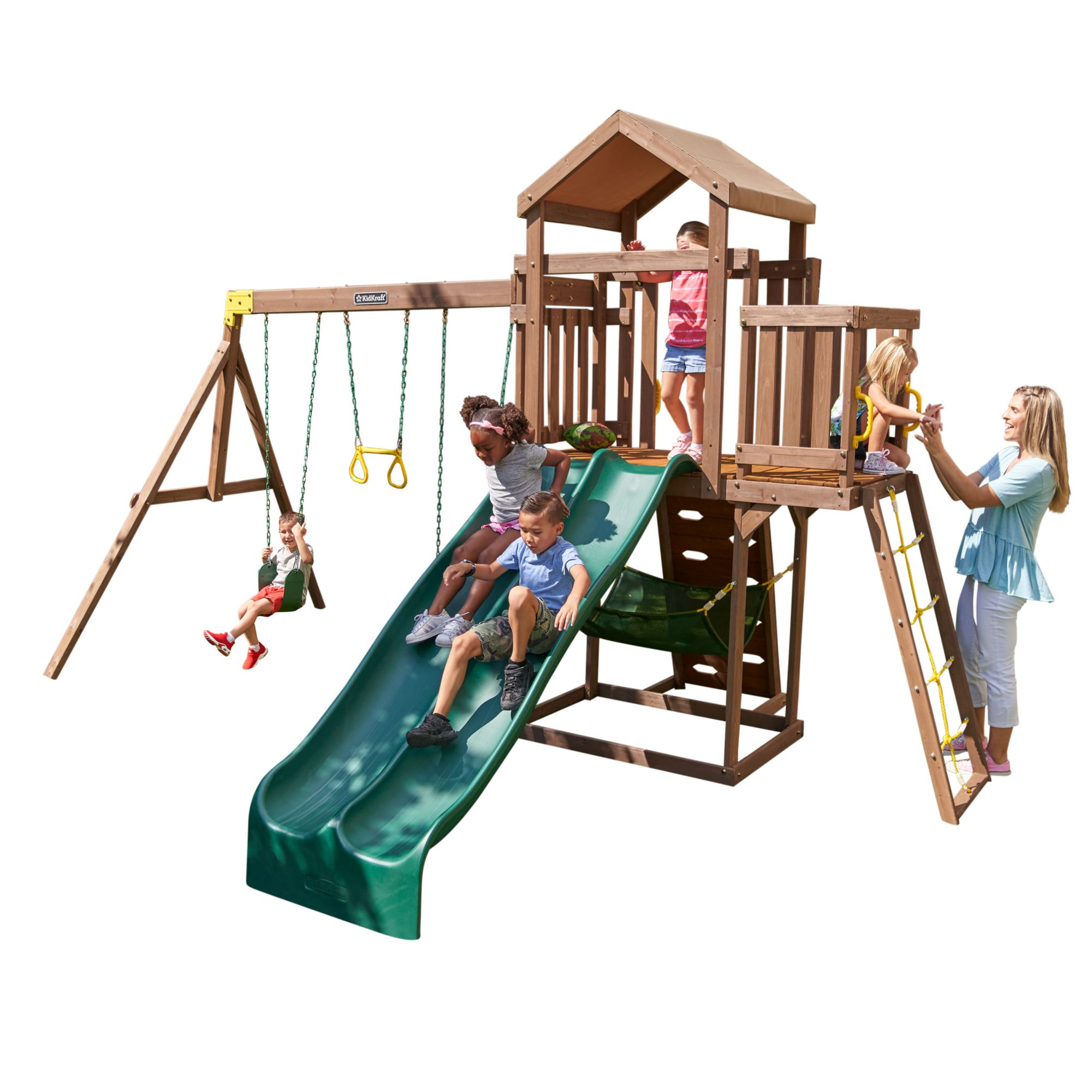 KidKraft Adventure Vista Wooden Playset With Hammock, Slides, and Swings