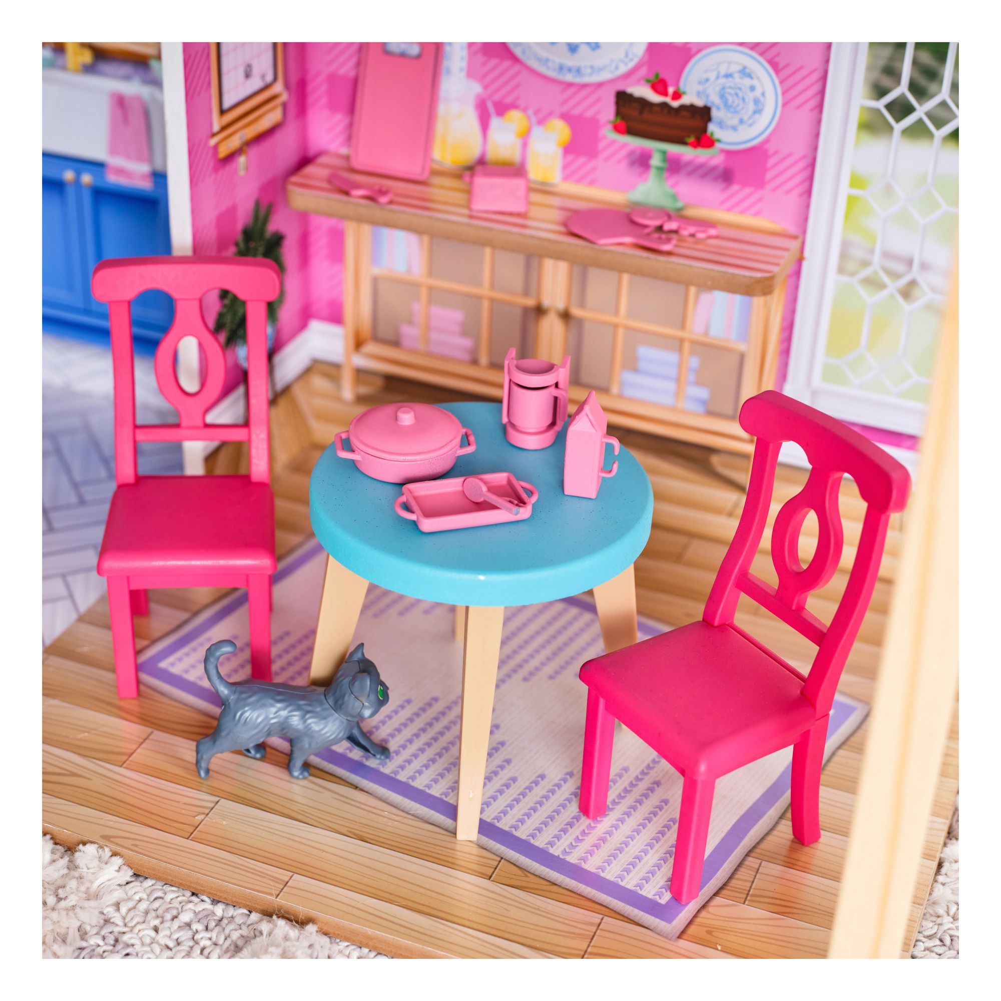 Includes 43 farmhouse pieces including furniture, a movable ladder, a cat, and kitchen accessories