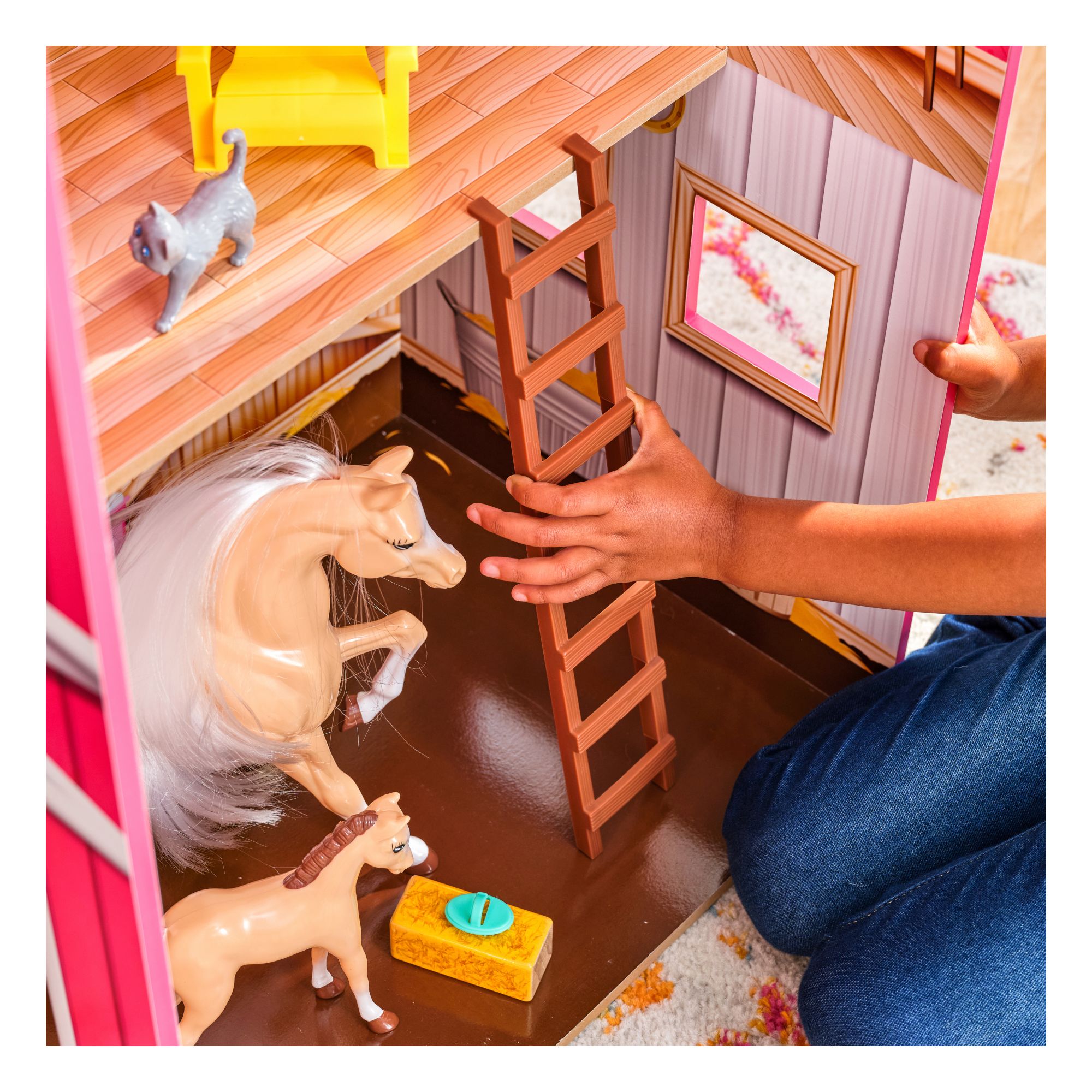 Kidkraft Champion Wood Dollhouse, Horse Barn with Two Horses, Lights, Sounds, and 43 Accessories