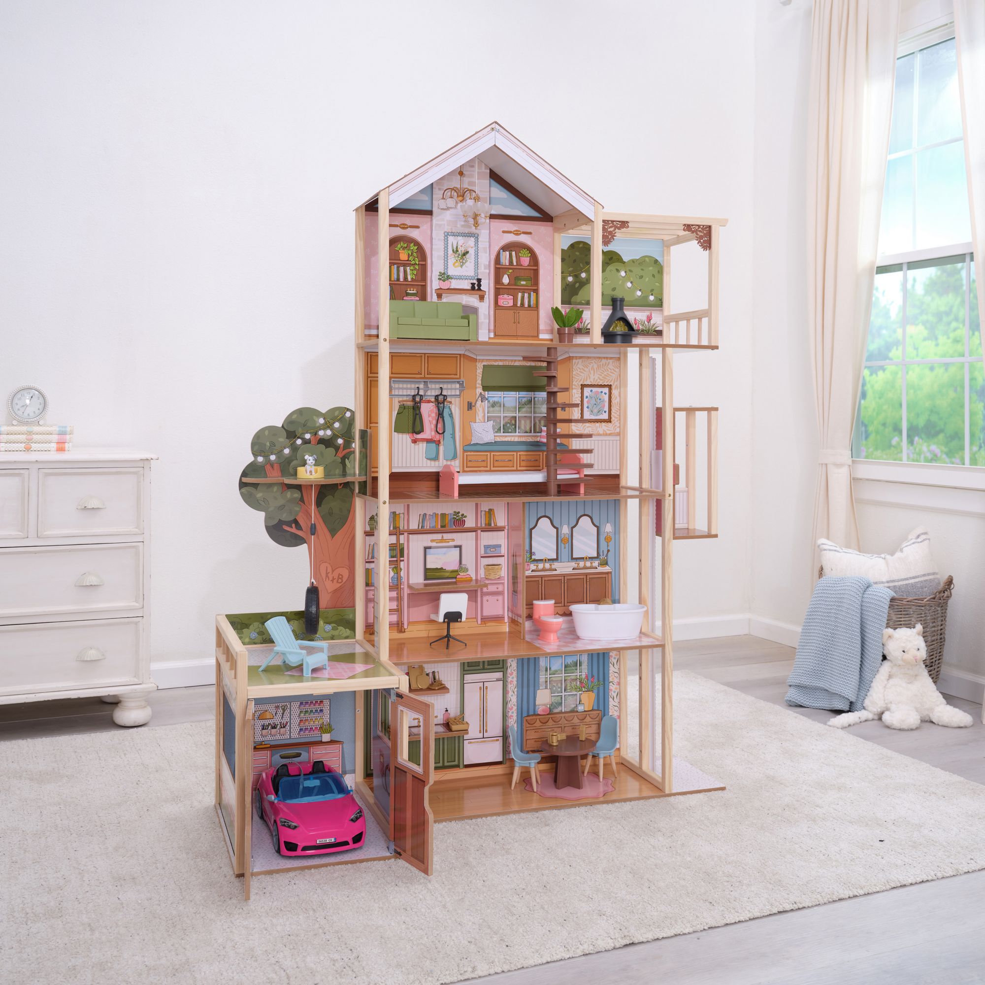 KidKraft Garden Party Dollhouse with Toy Car with 37 Pc. Accessories
